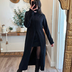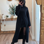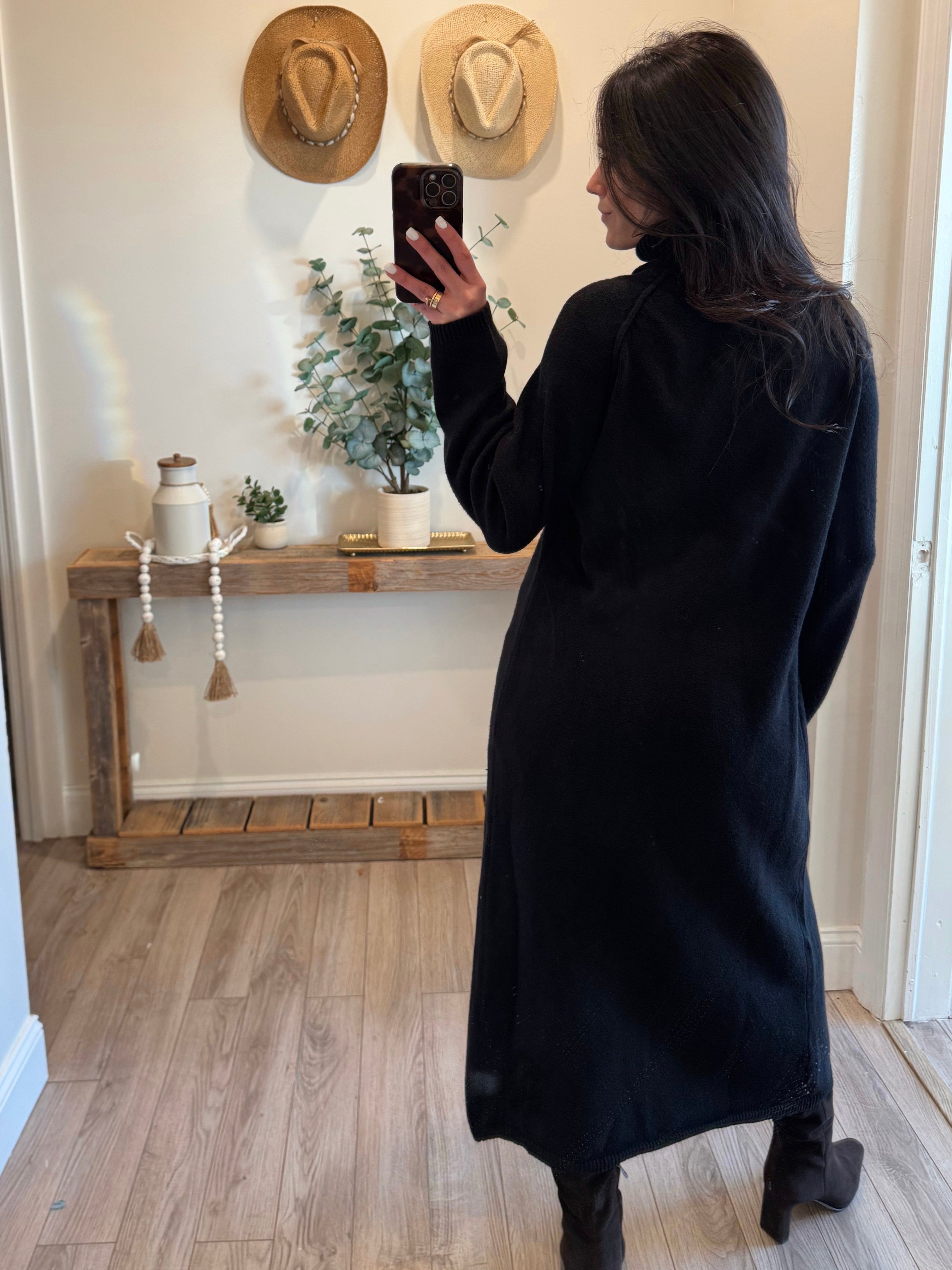 Black Turtleneck Tunic Sweater Dress with Slit