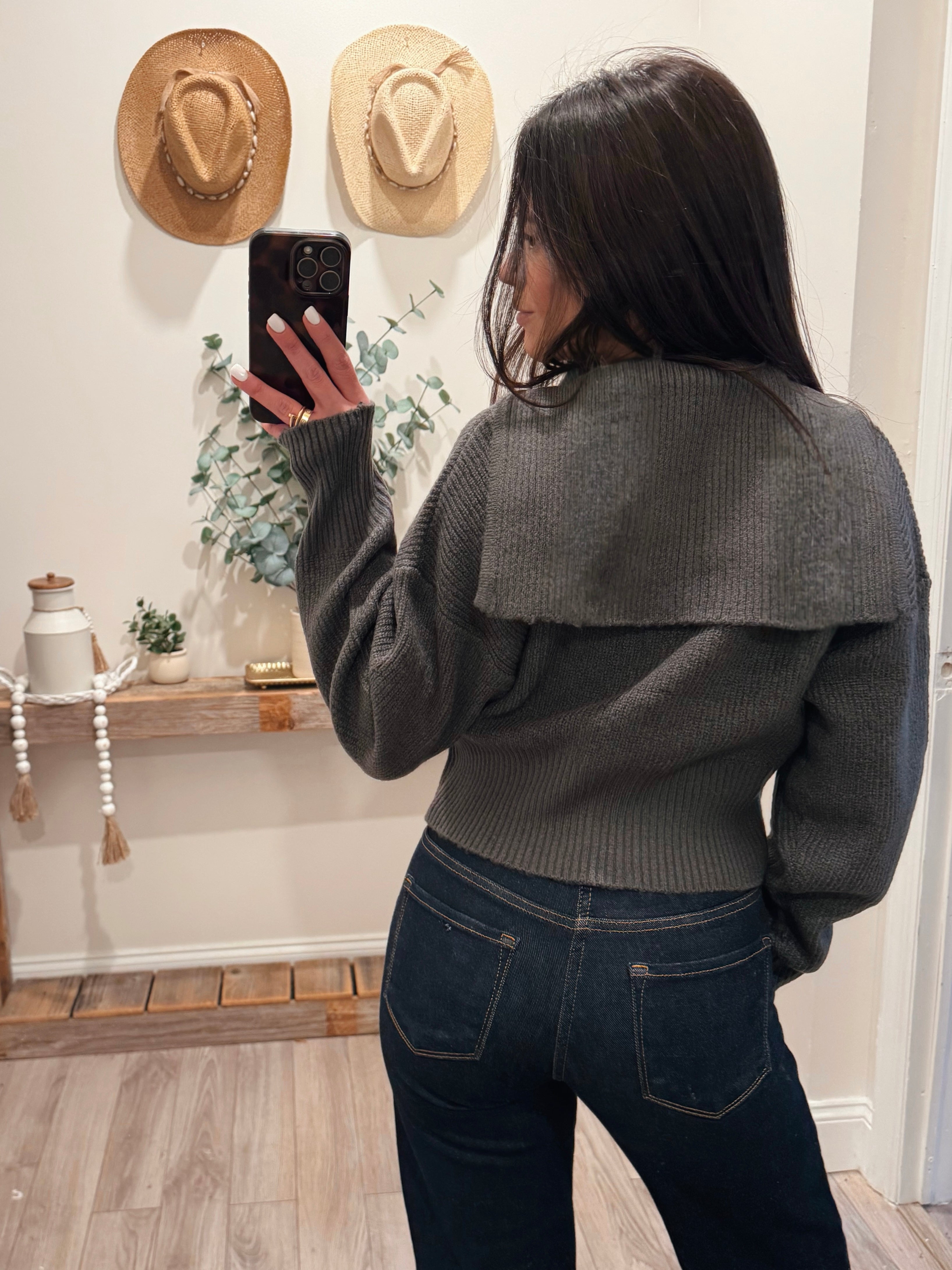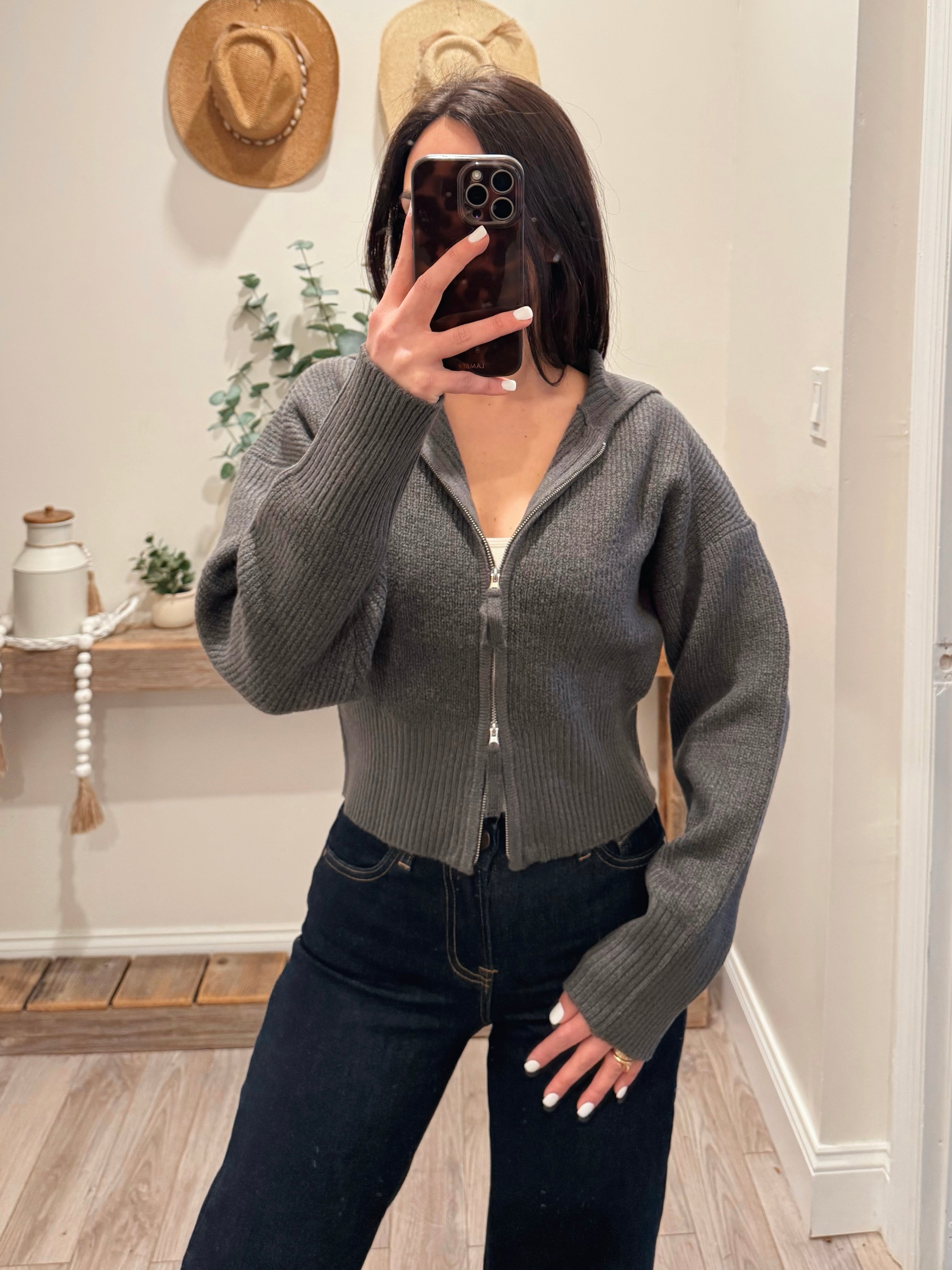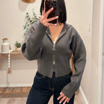 Charcoal Front Zip Collared Sweater Cardigan