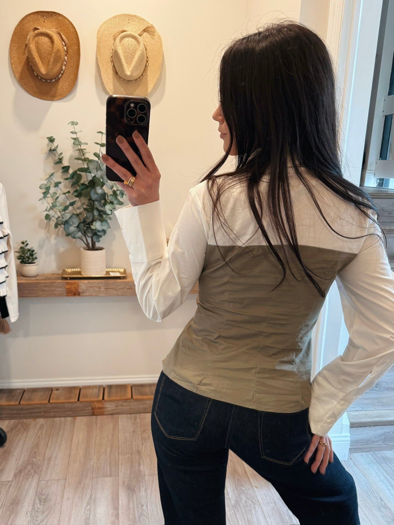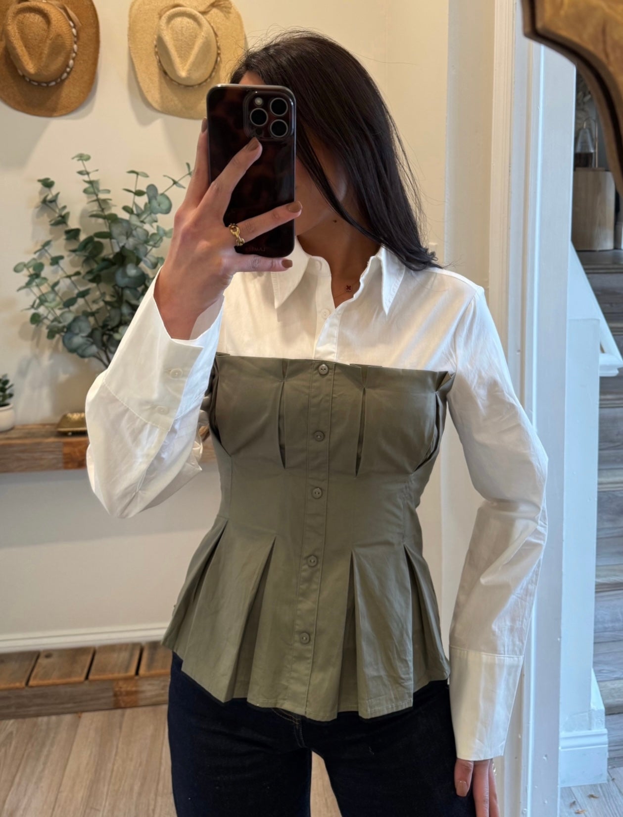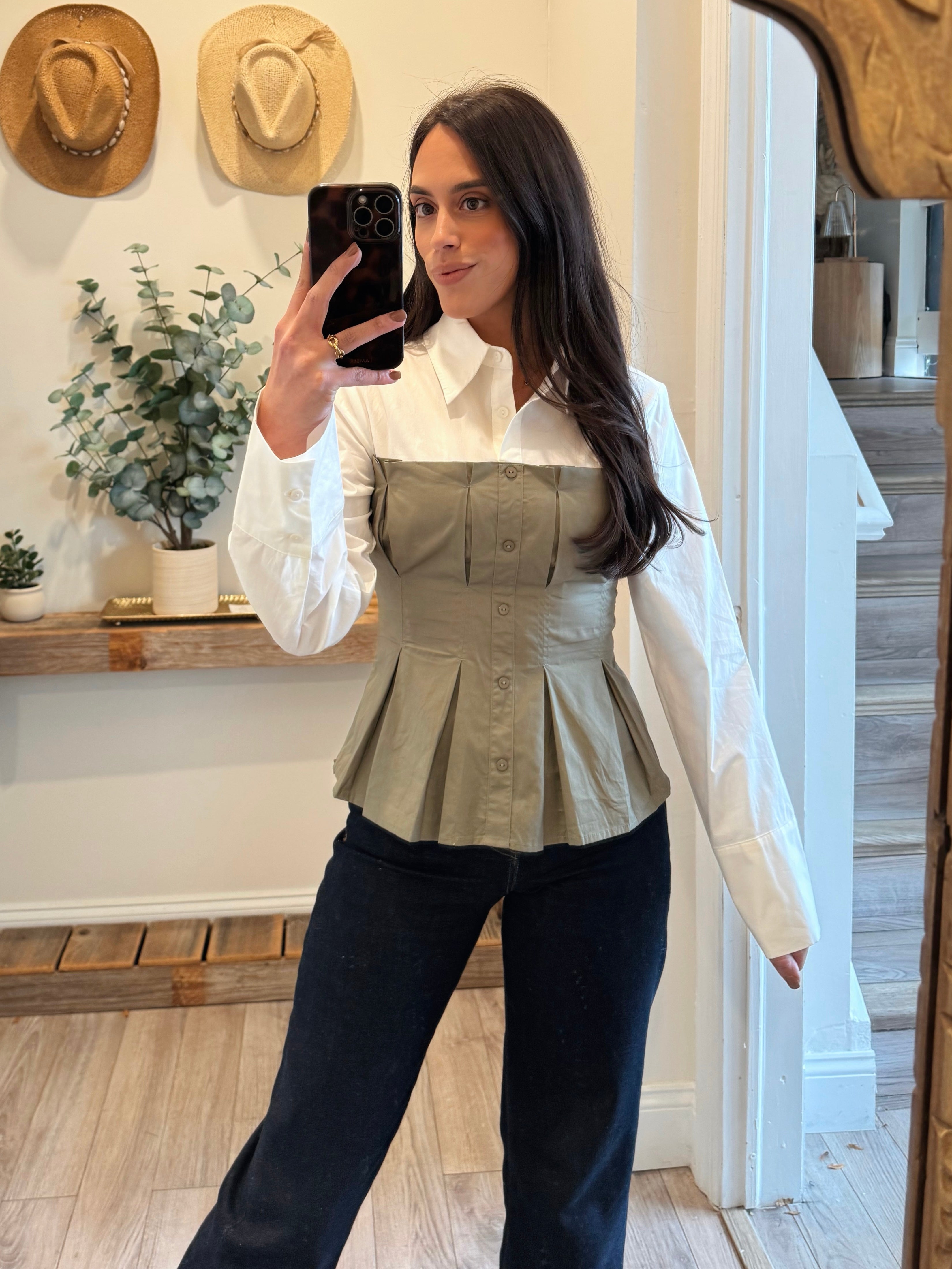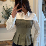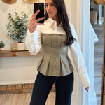 Olive/Cream Rebecca Corset Shirt Combo Top