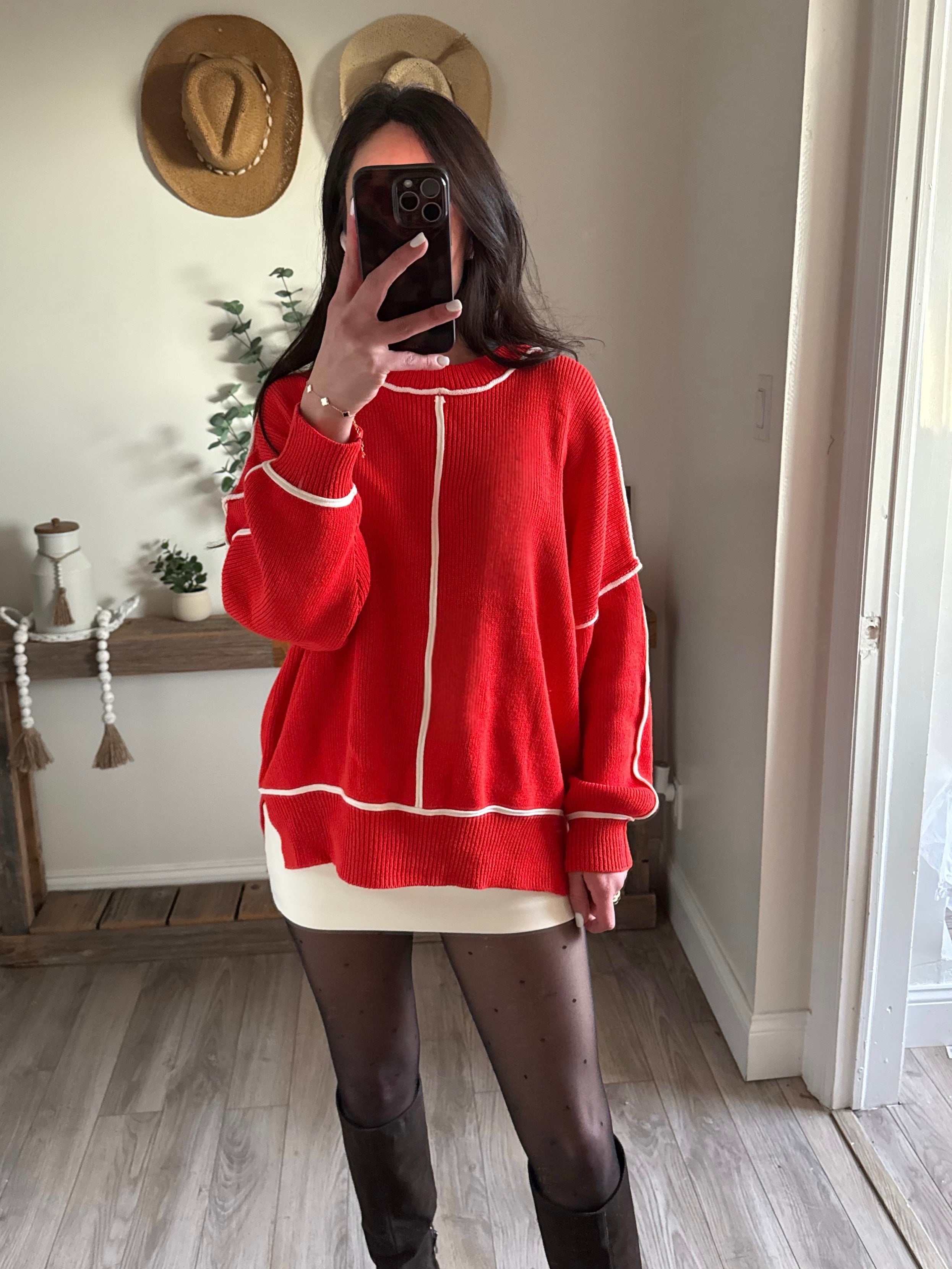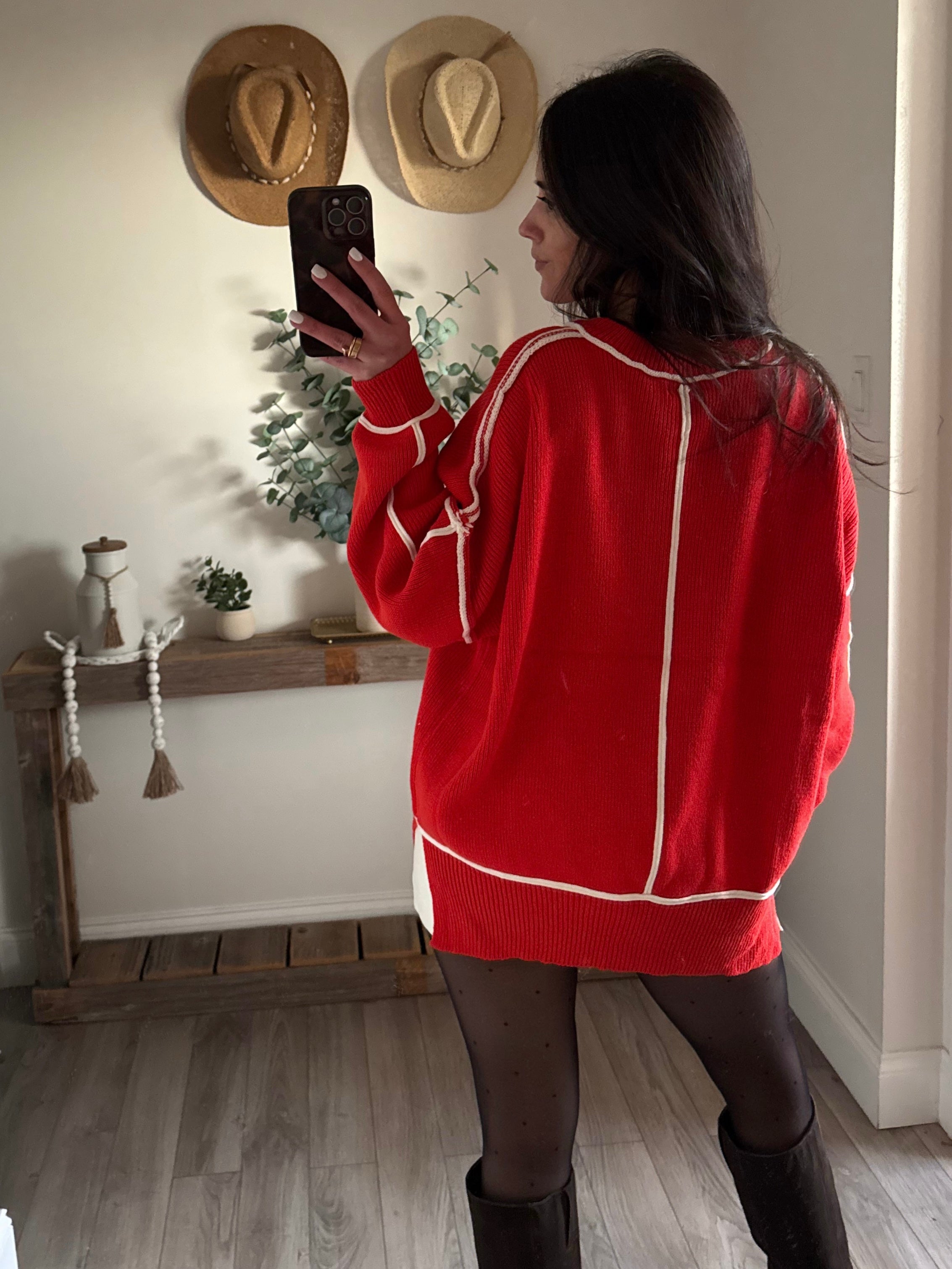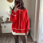 Red Sophia Exposed-Seam Oversize Sweater