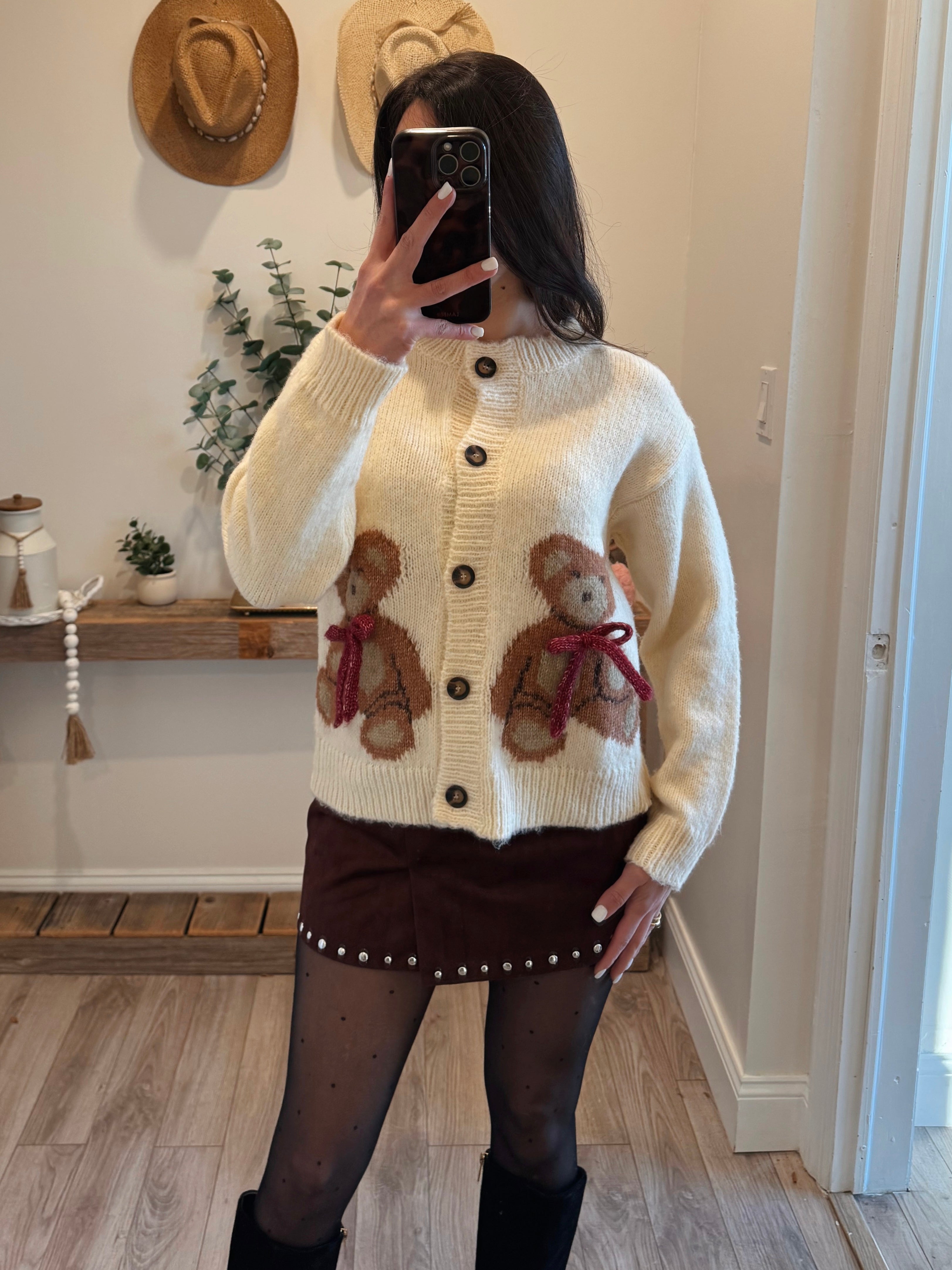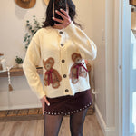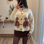 Product Features: - Soft knit cardigan - Teddy bear intarsia with bow accents - Button-front closure - Relaxed fit with ribbed cuffs and hem - Full-length sleeves for all-season wear
