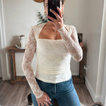 Ivory Annie Lace Ruched Long Sleeve Top