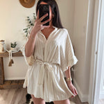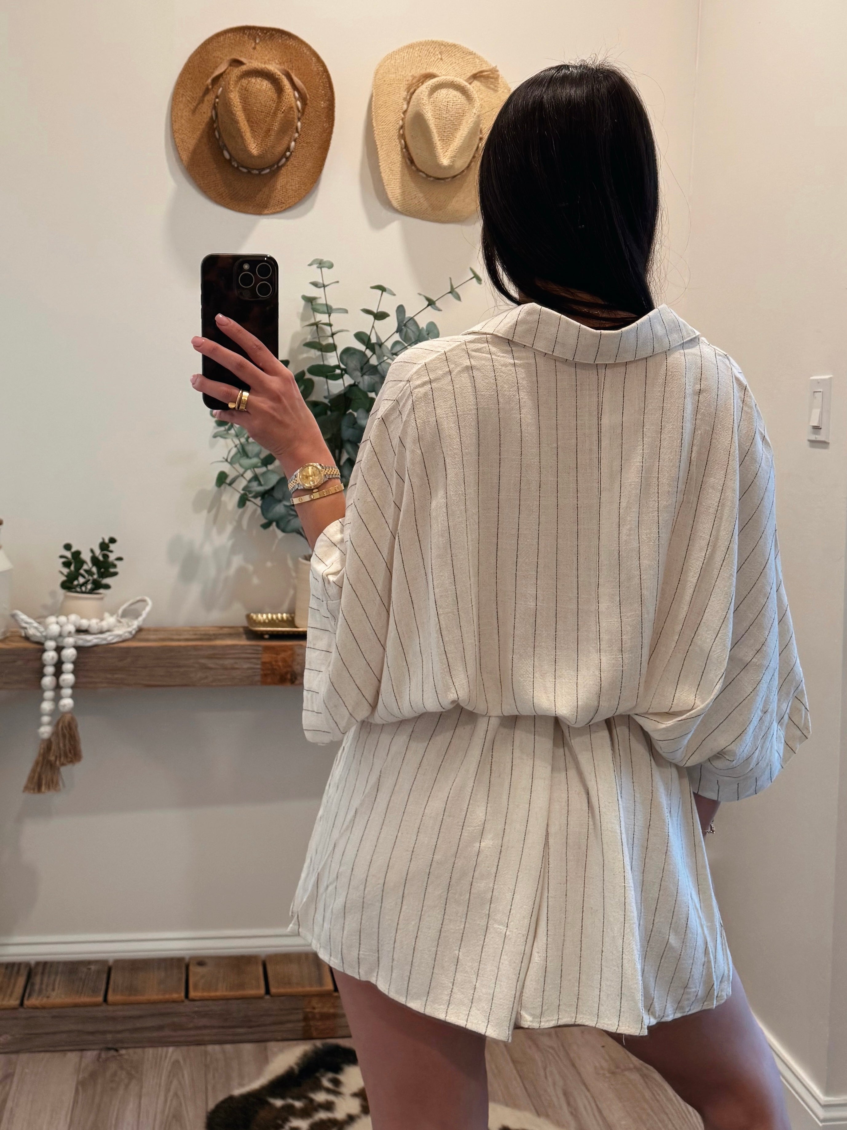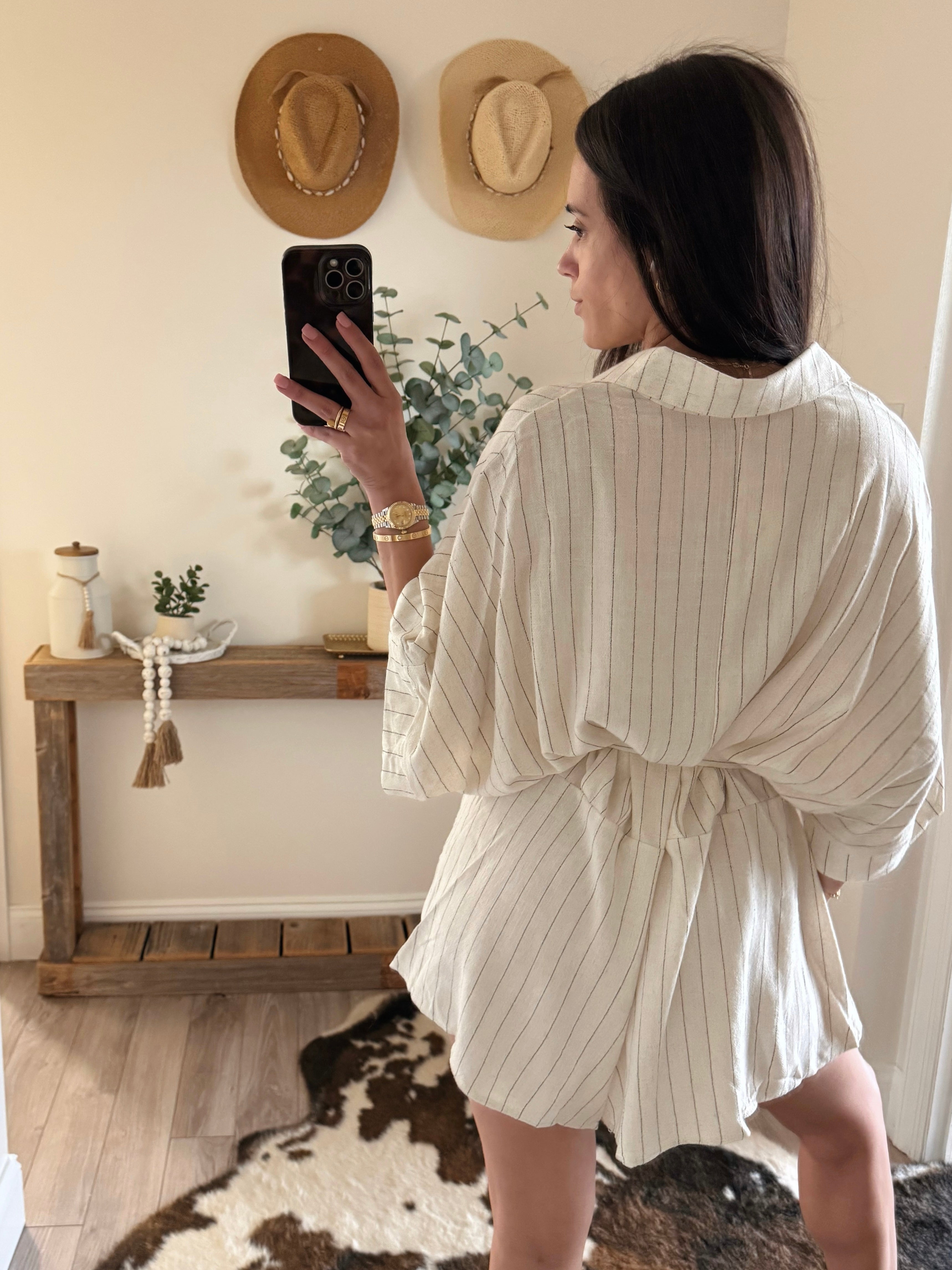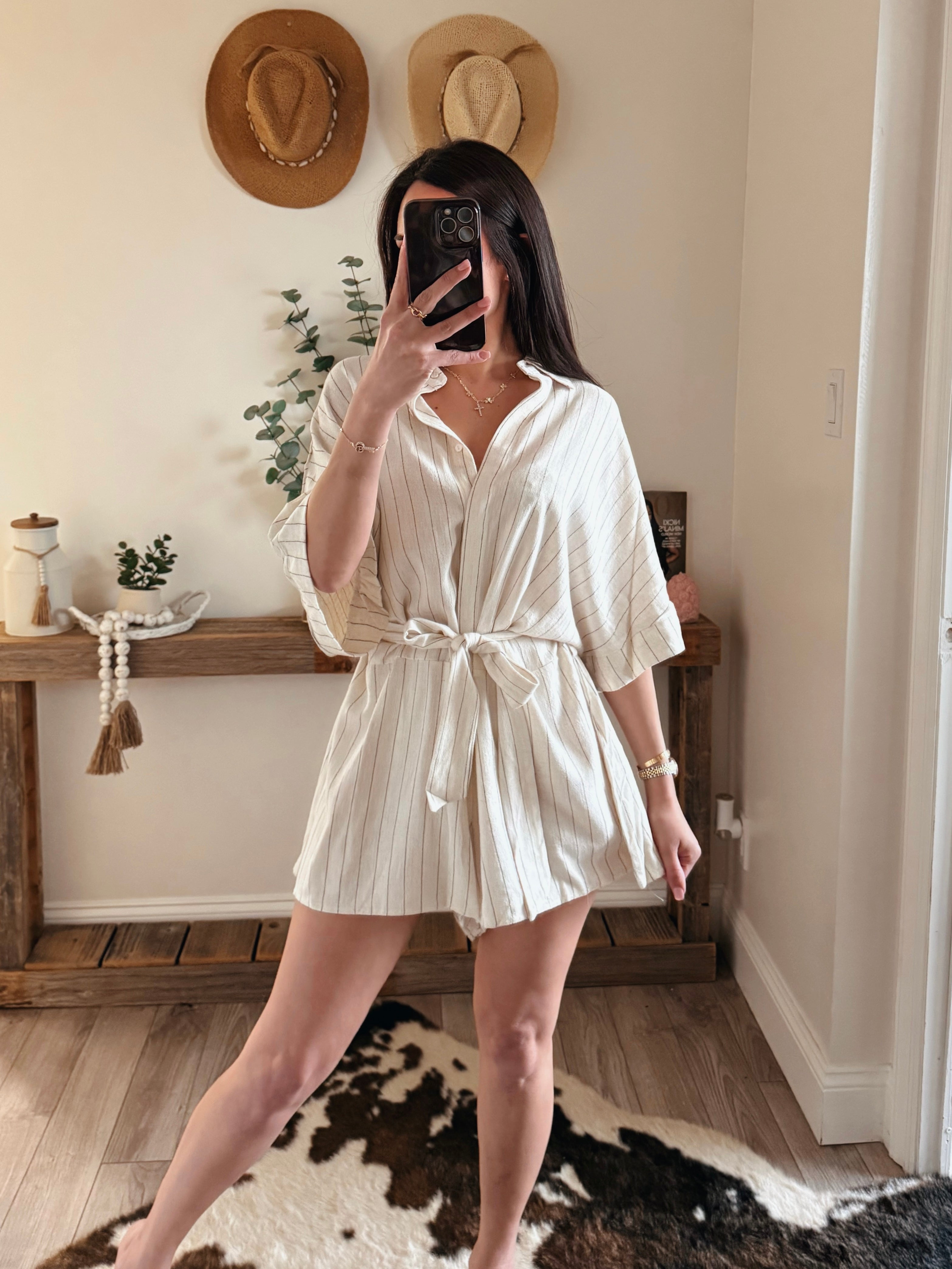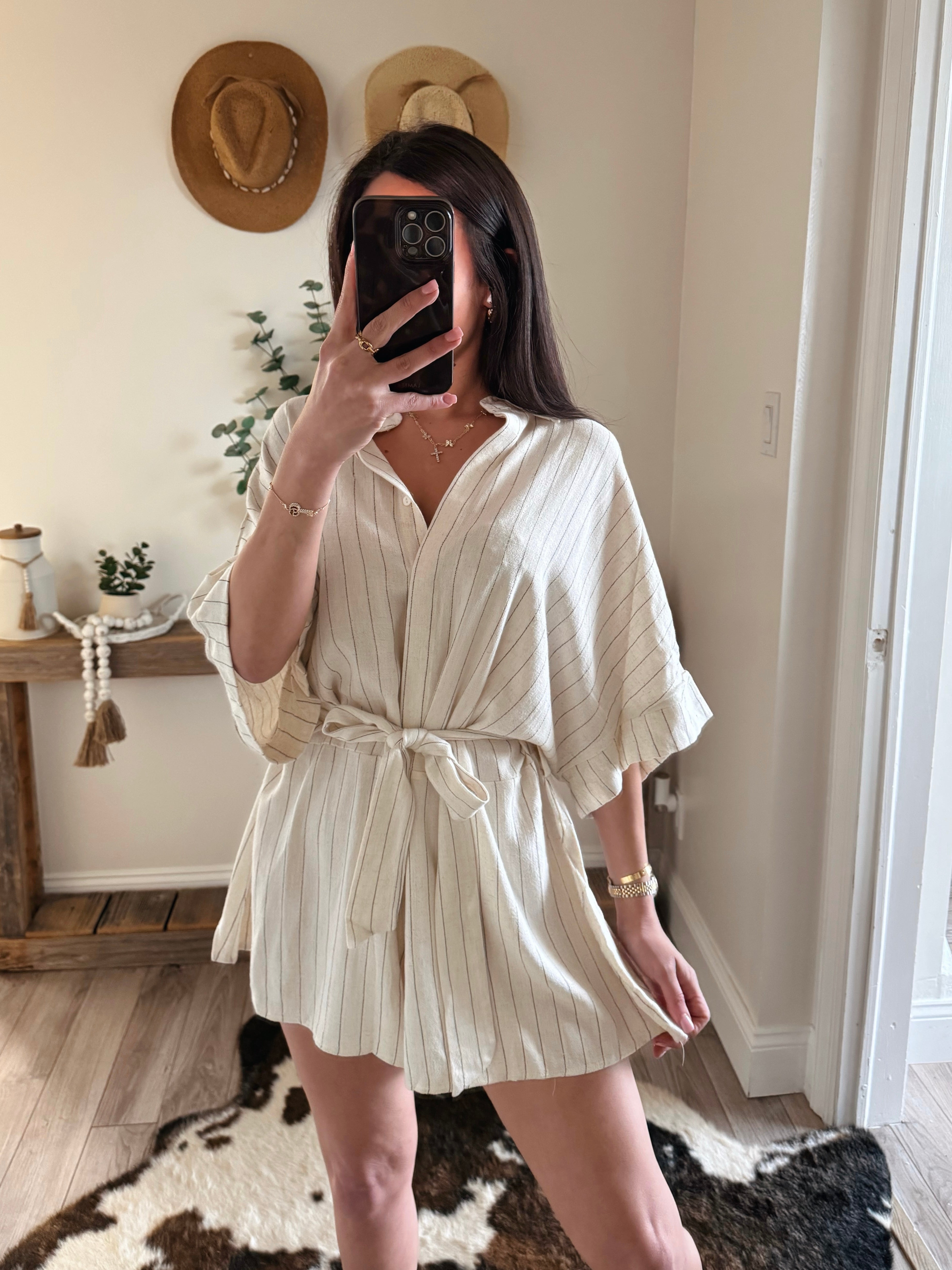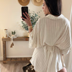 Beige Linen Stripe Romper