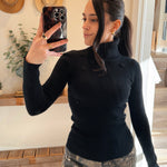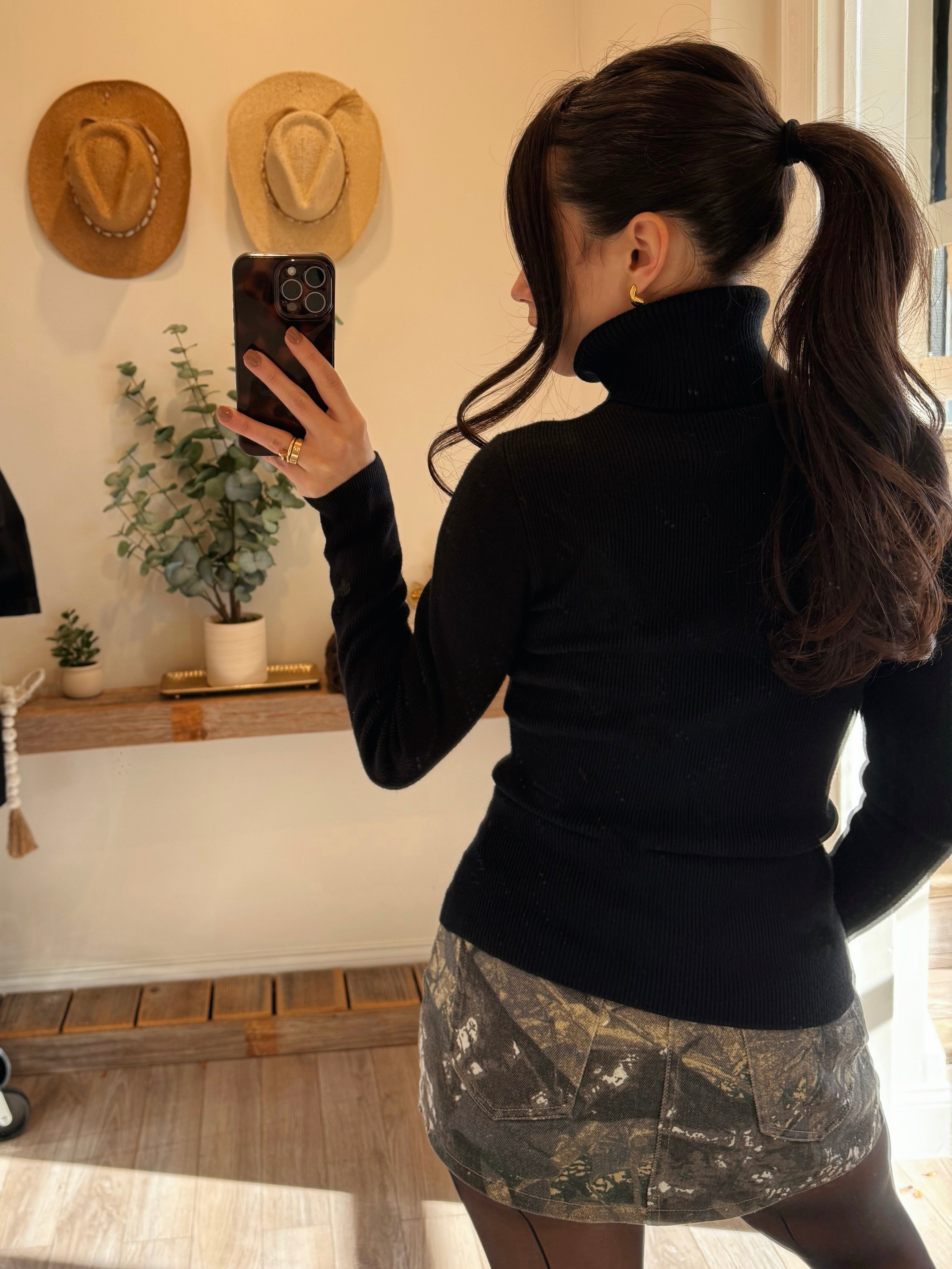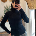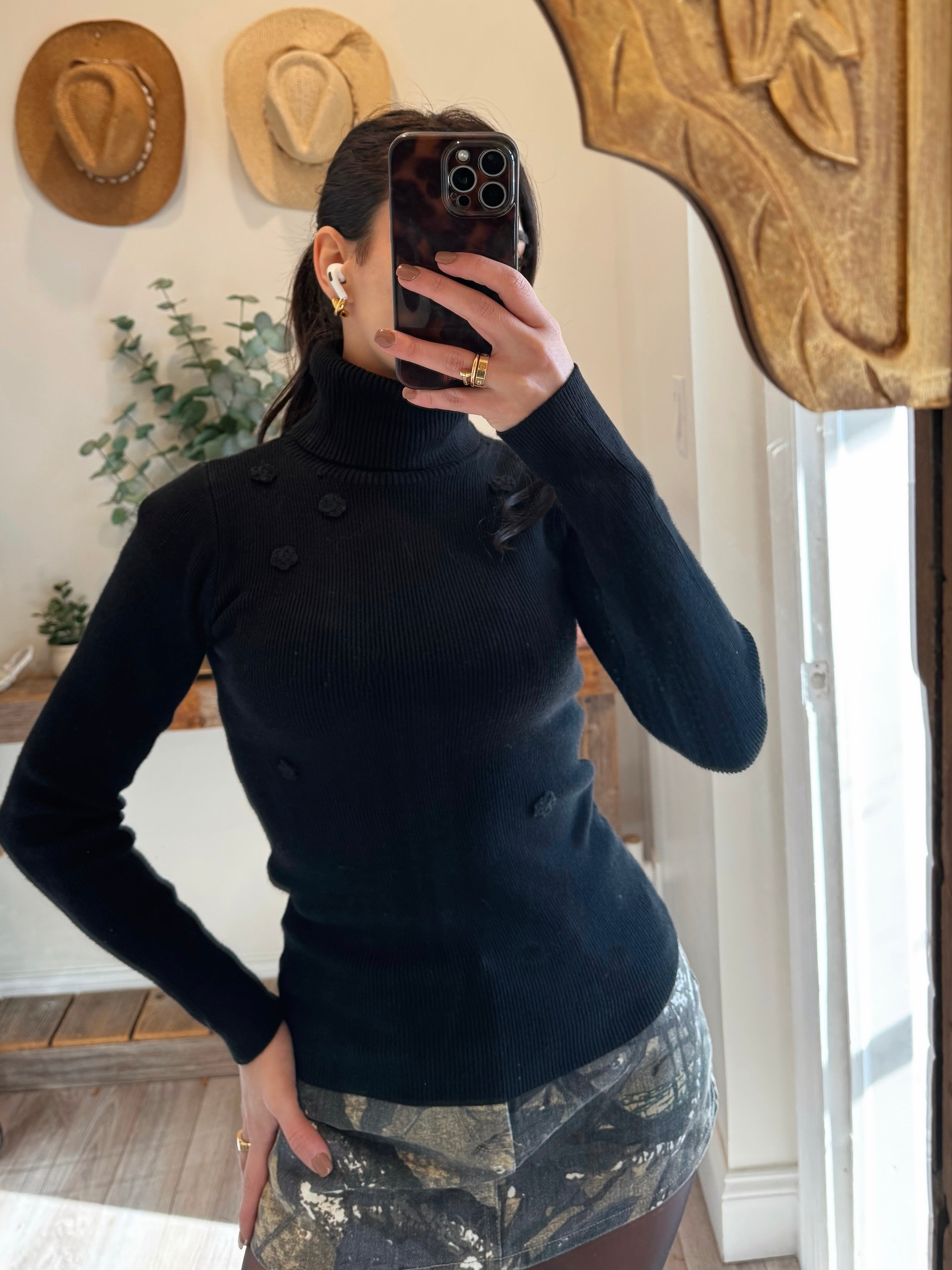 Black Flower Point Turtle Neck Sweater