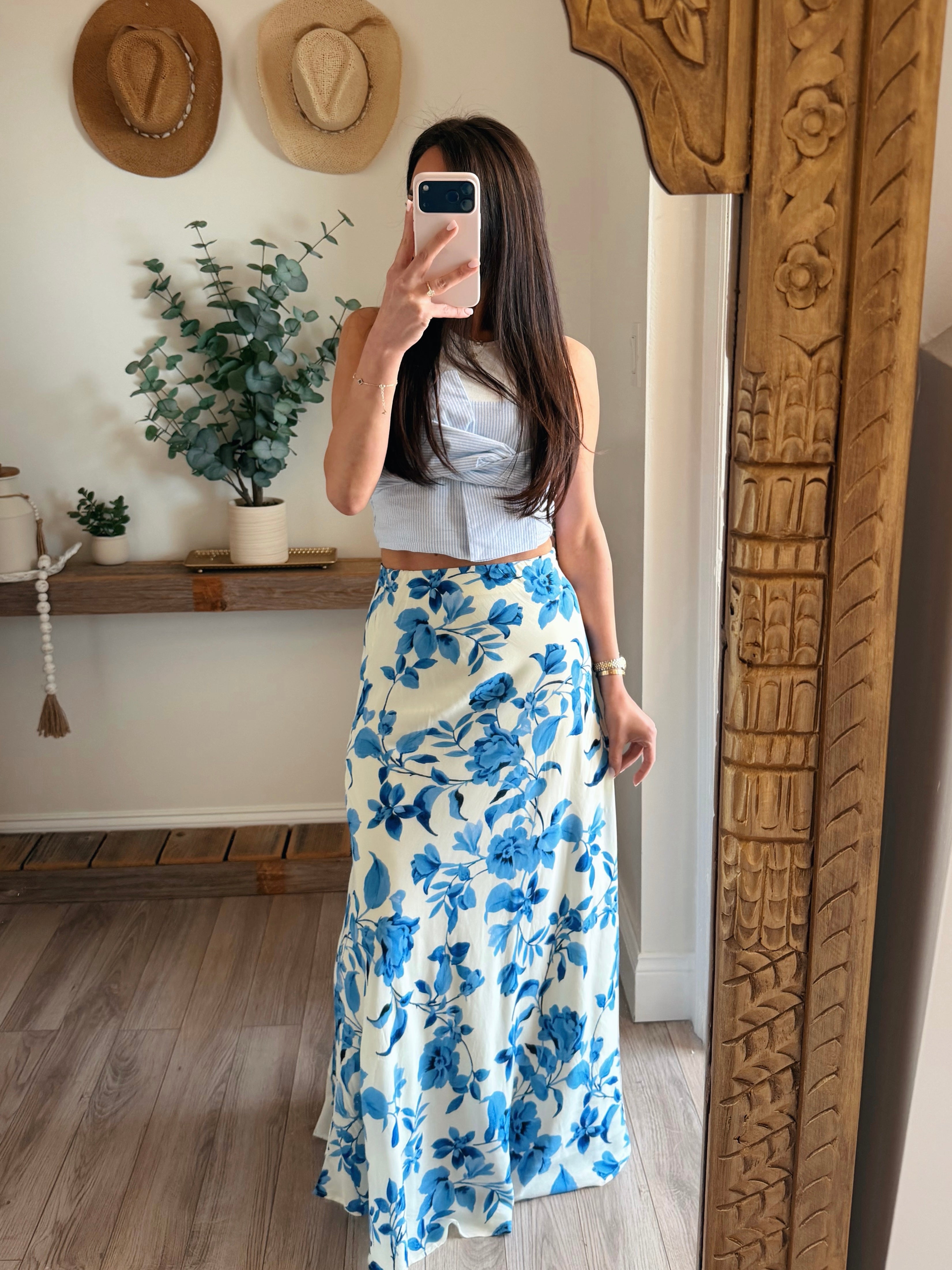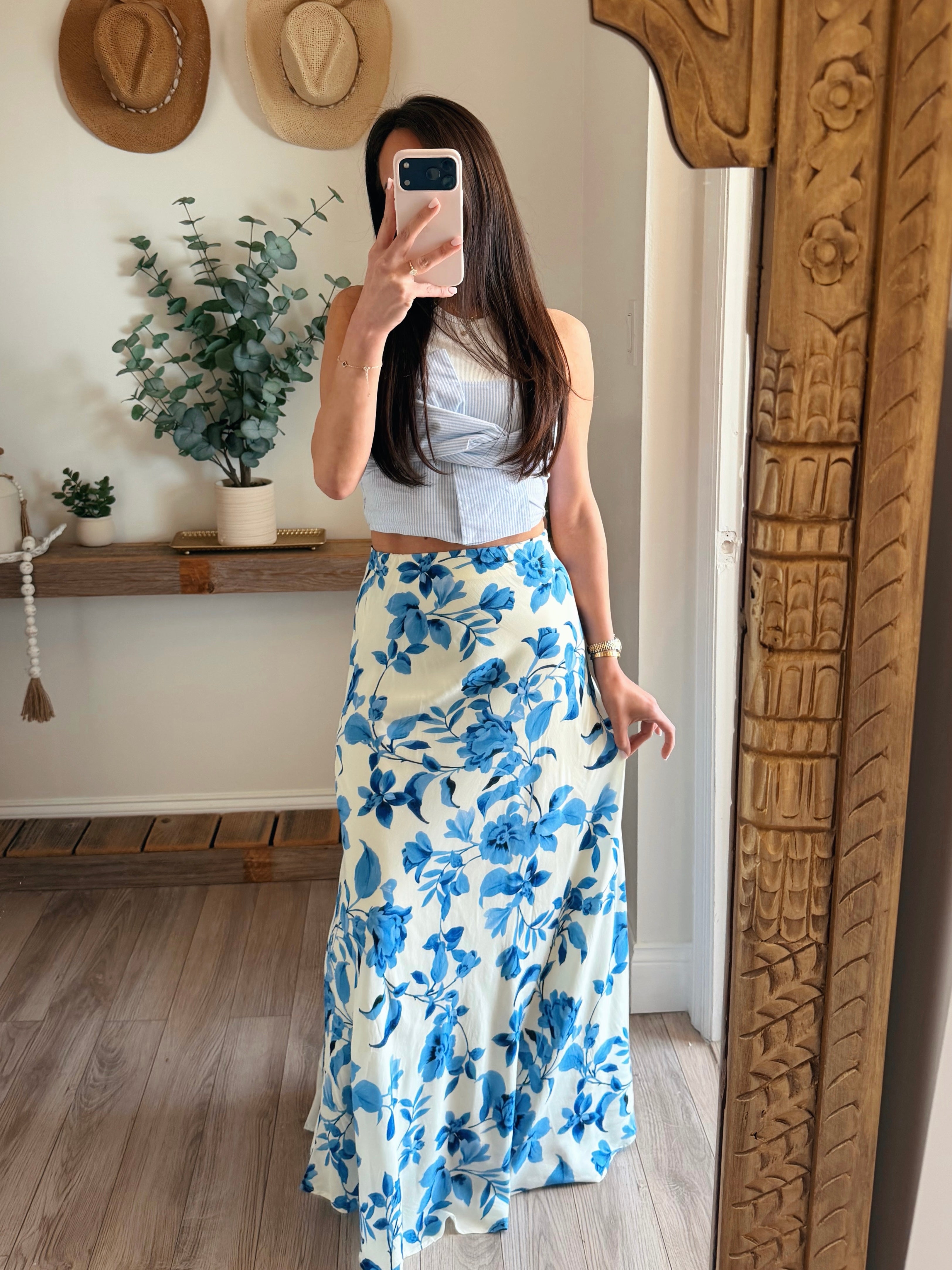 Blue/Cream Frankie Floral Skirt