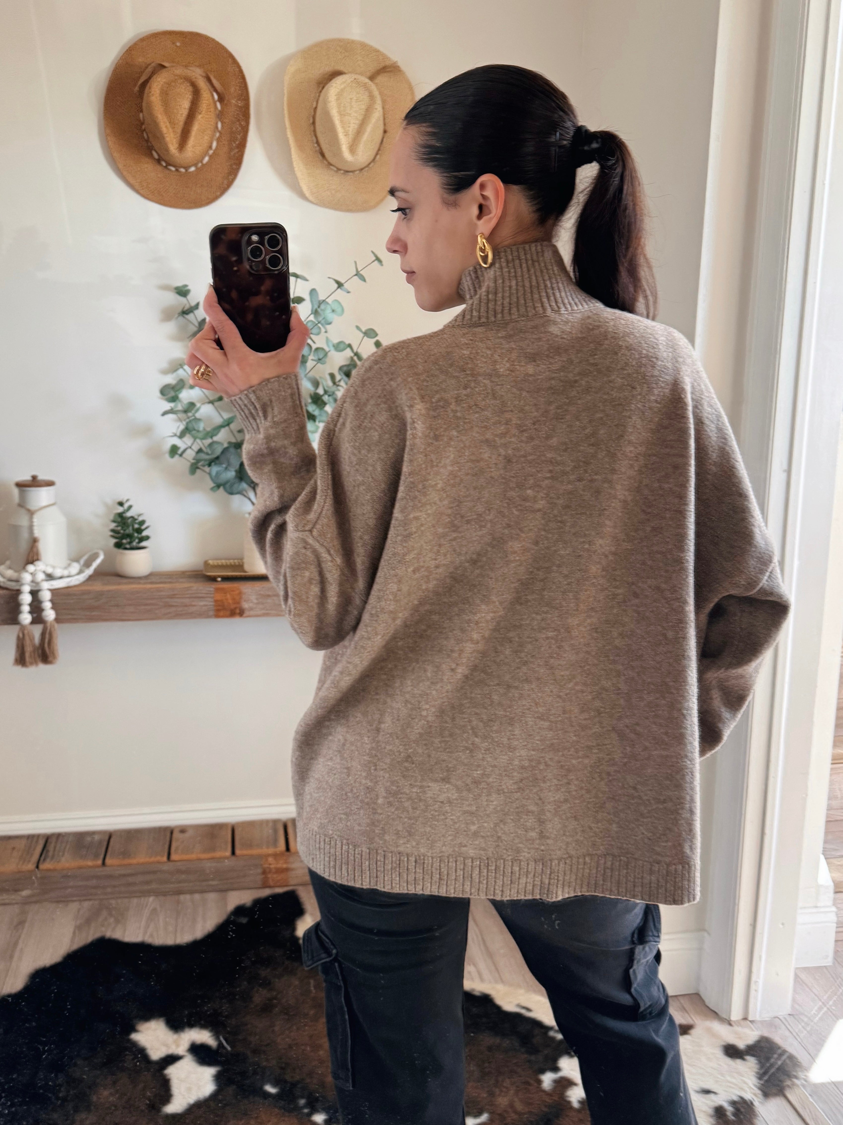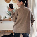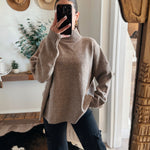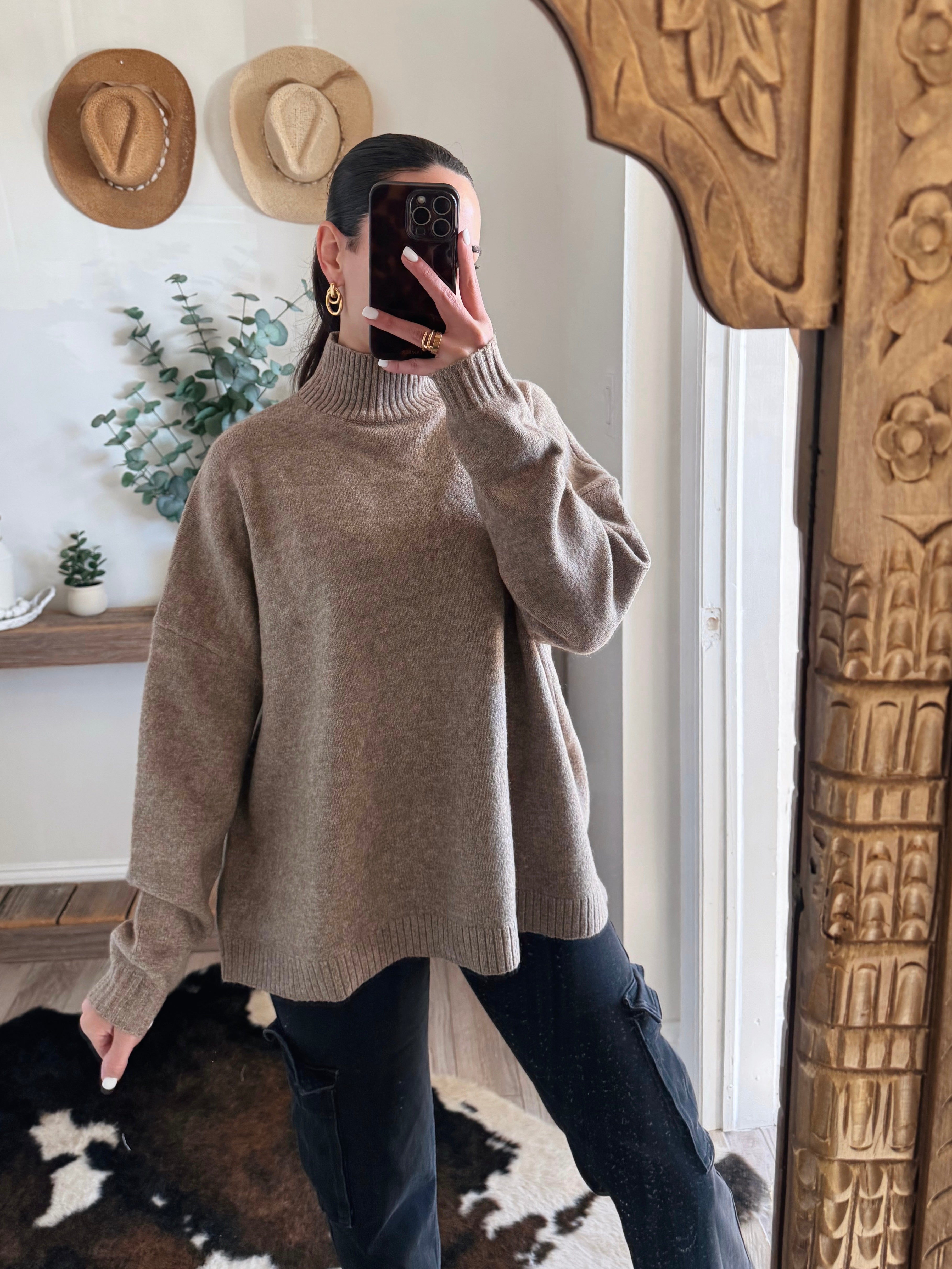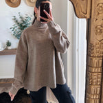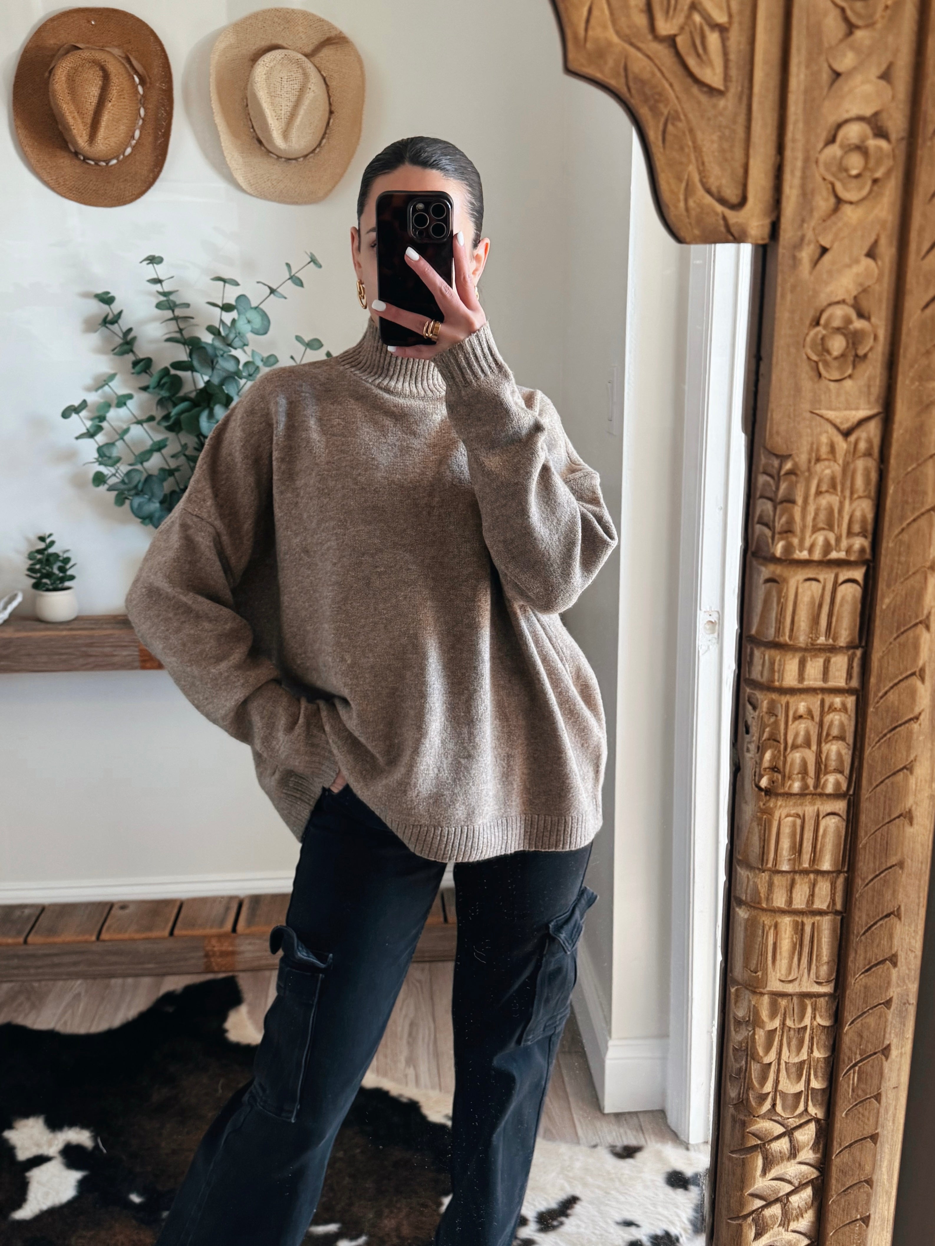 Cappuccino Cozy Oversized Drop Shoulder Turtleneck Knit Sweater