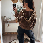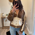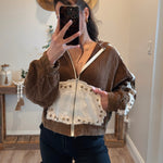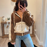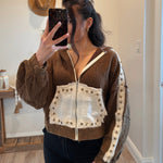 Chocolate Vintage Washing Double Gauze Stud Detail Hoodie Jacket