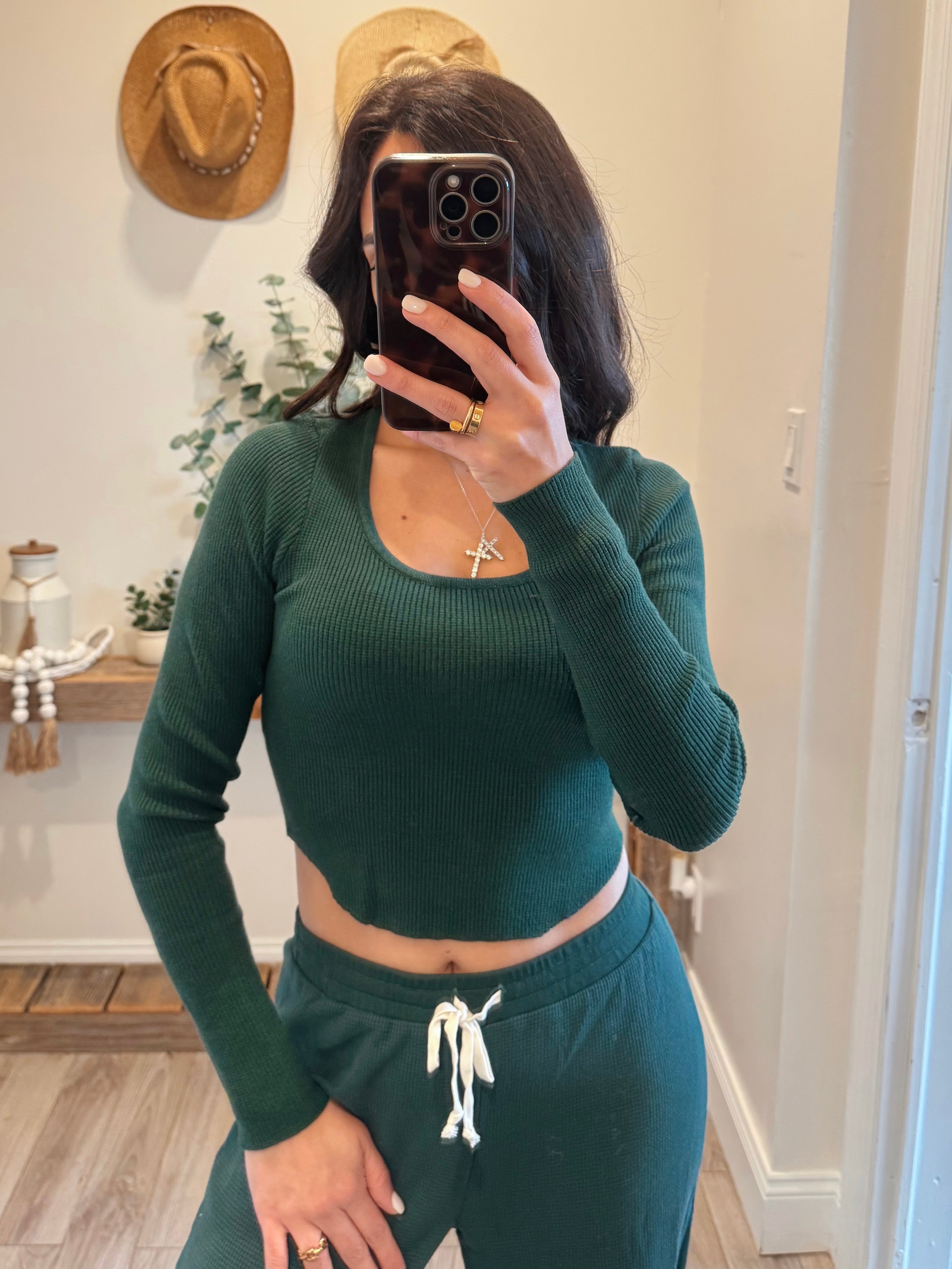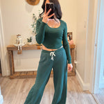 Dark Green Scoop Neck Long Sleeve