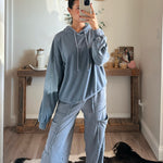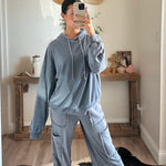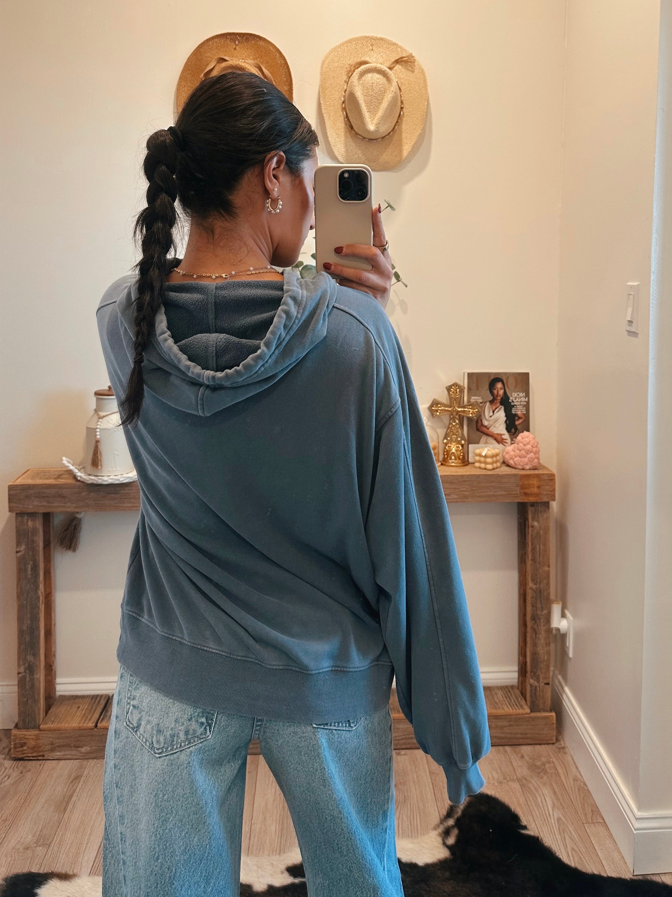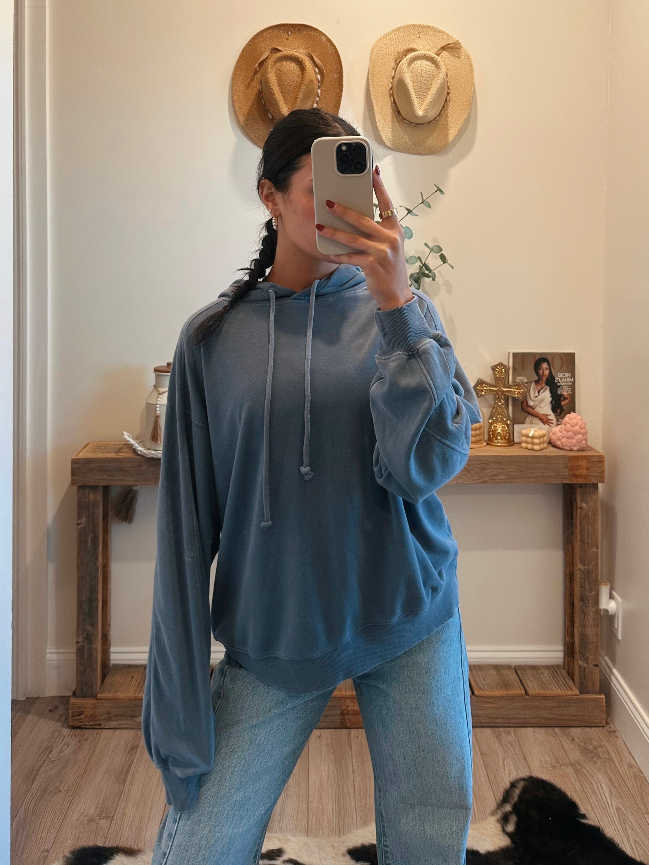 Dusty Navy Mineral Washed Seam Detail Hoodie