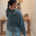 Product Features:This mineral-washed hoodie offers cozy comfort with unique seam details and a drawstring hood. Fitted cuffs add a playful volume to the sleeves. Ideal for casual layering with leggings or denim.