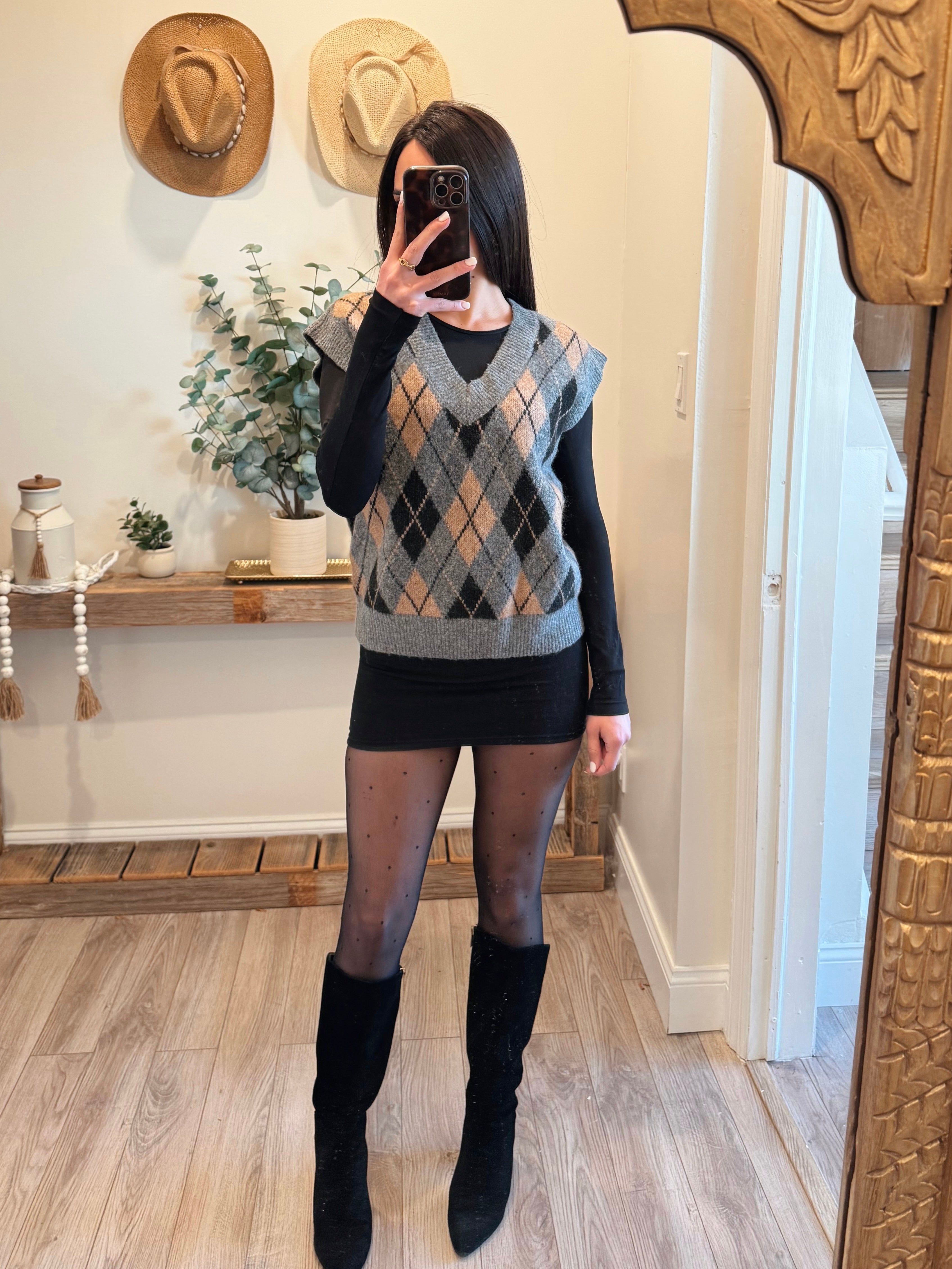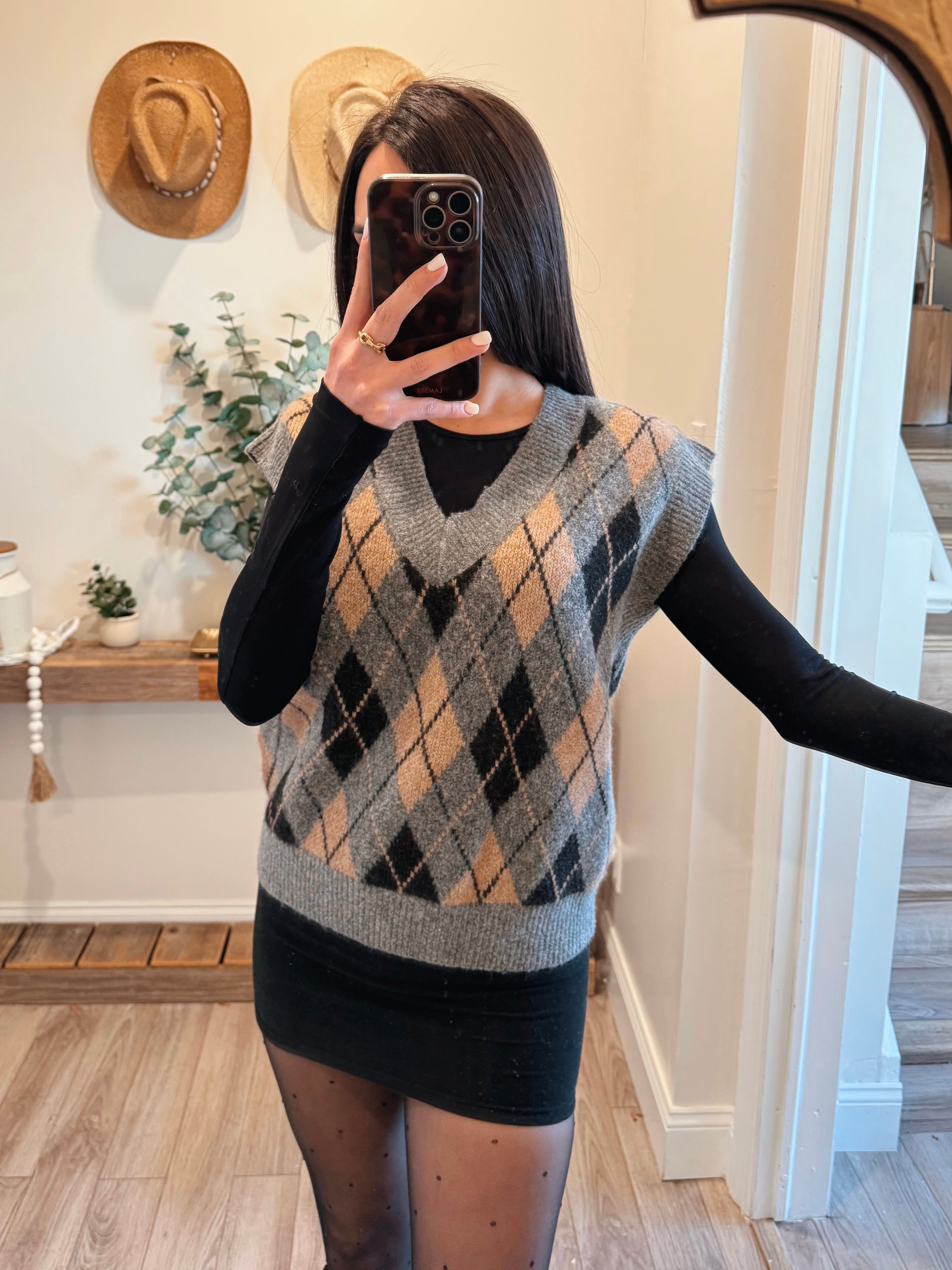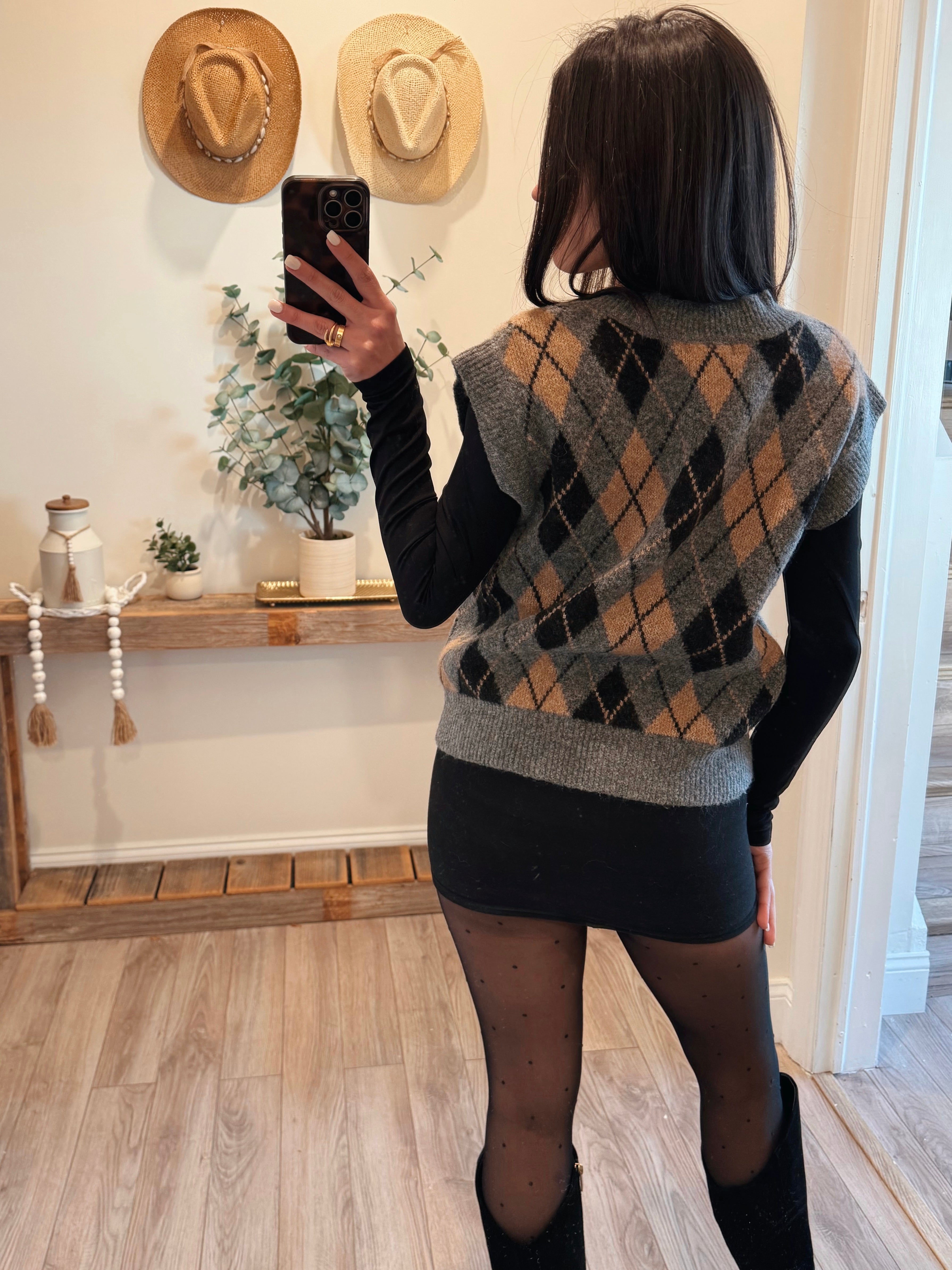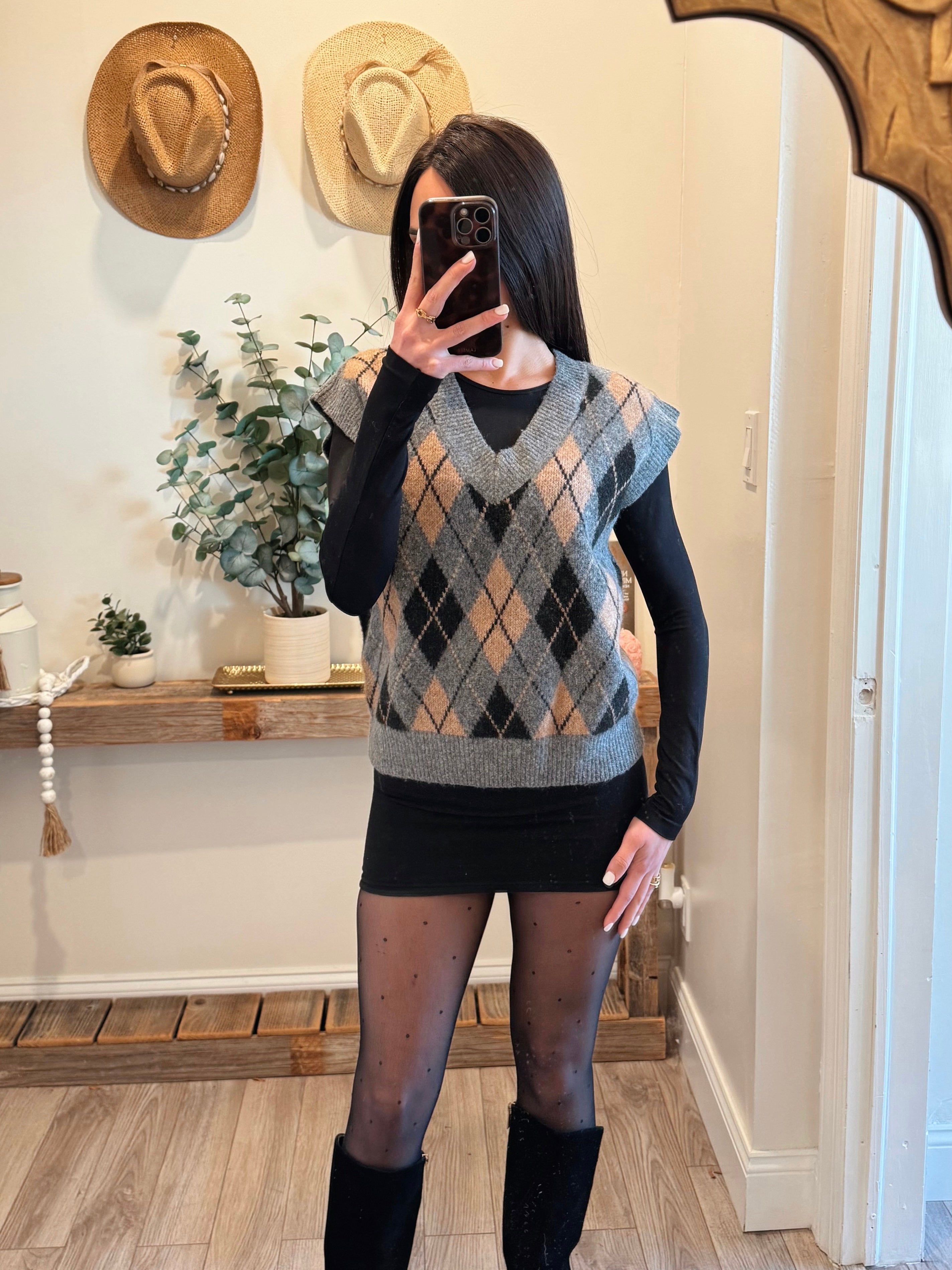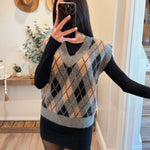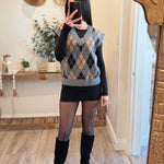Gray Argyle V Neck Vest
