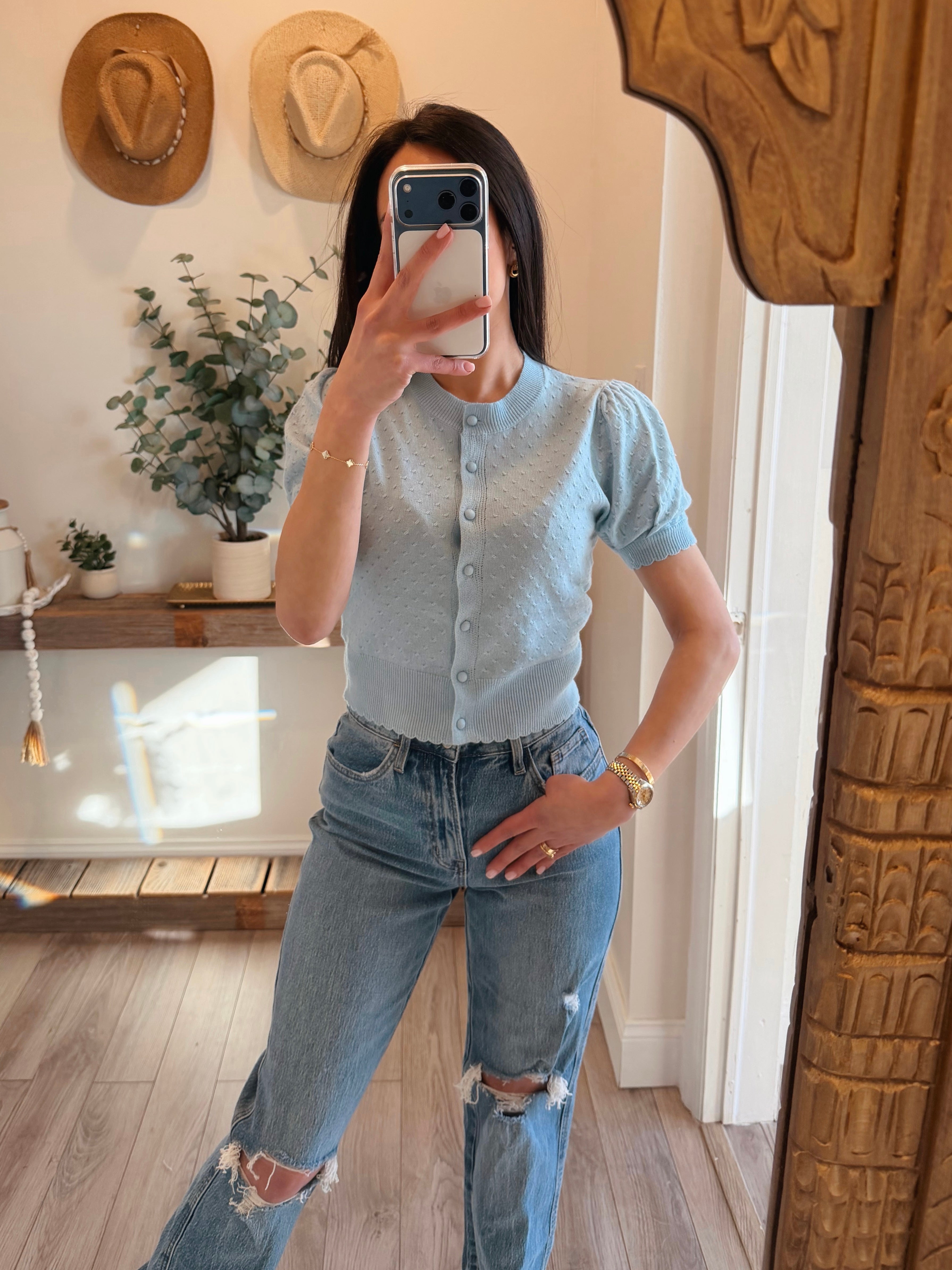 Jaylene Blue Textured Cardigan