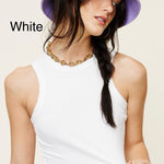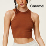 Product Features: This ribbed sleeveless tank has a round neckline and raw edge hem. It’s comfortable, versatile, and comes in many colors, making it easy to wear alone or layer.