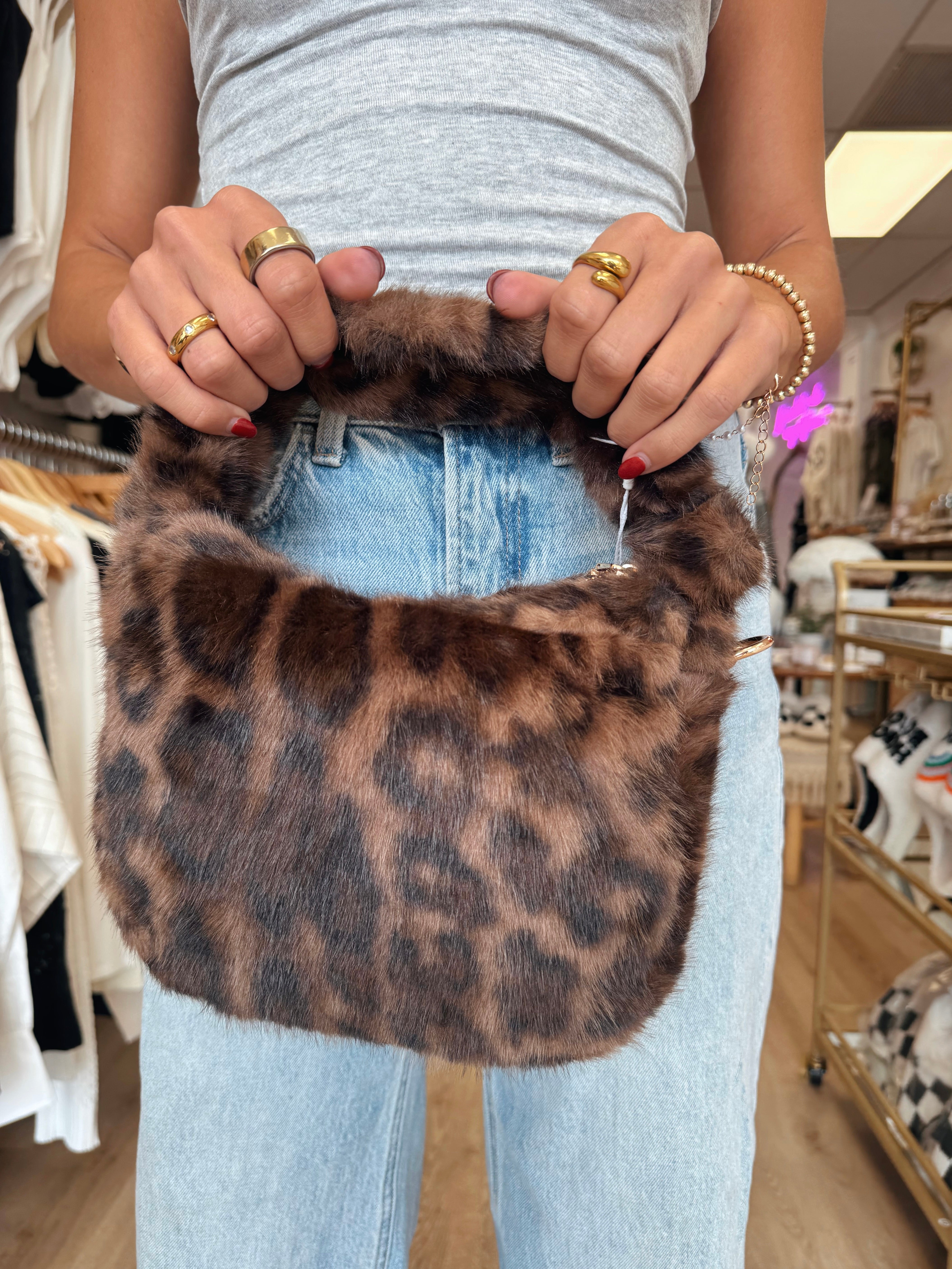 Exterior Details: Detachable Chain Strap, Gold Hardware, Knot Handle Detail, Faux Fur