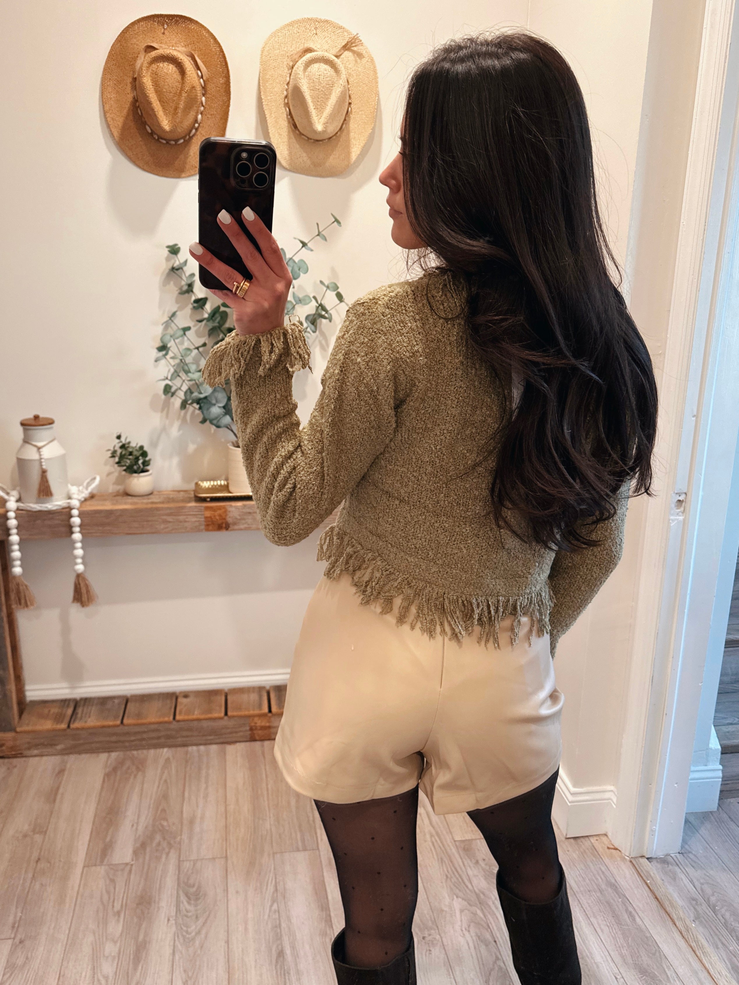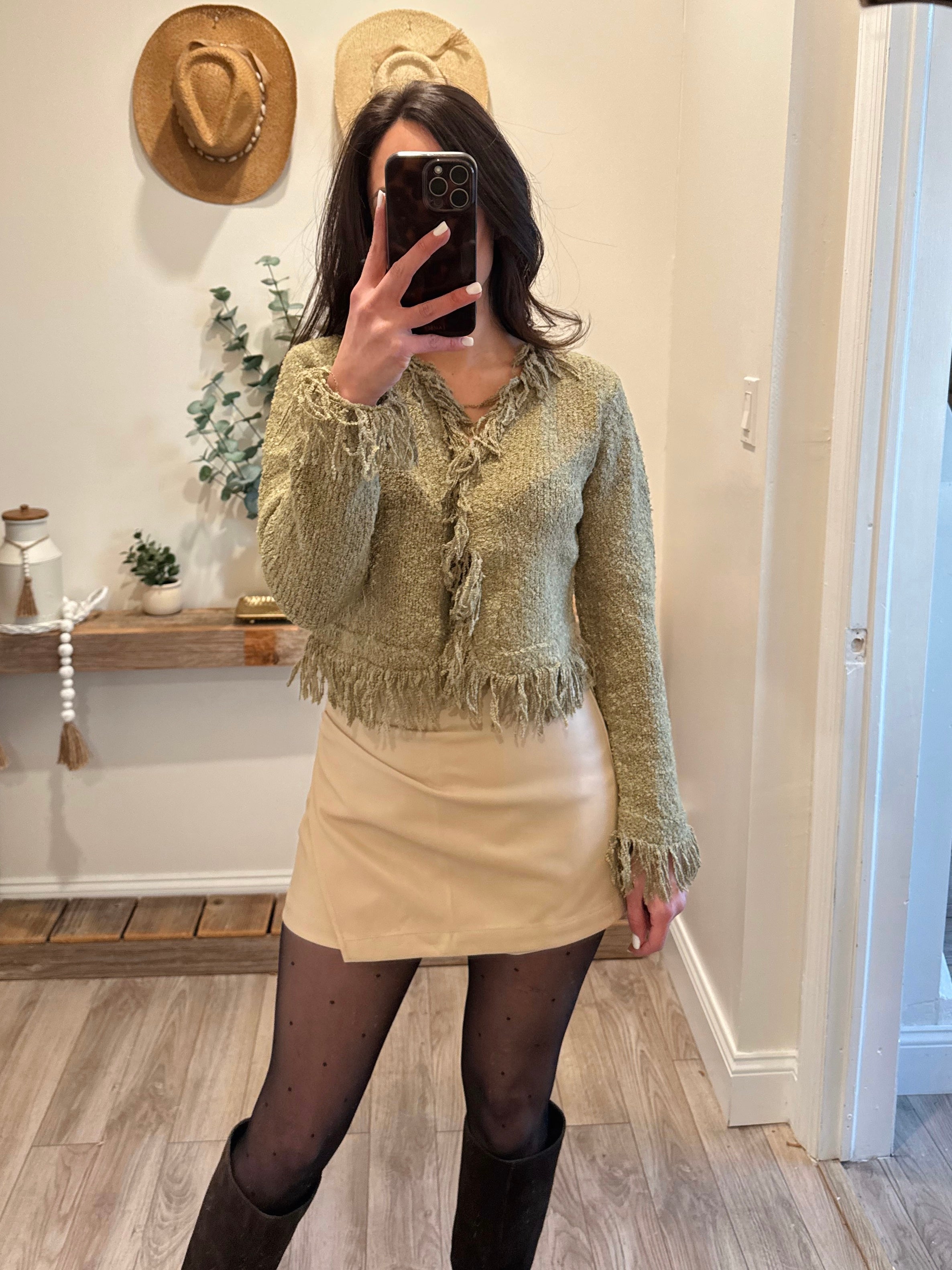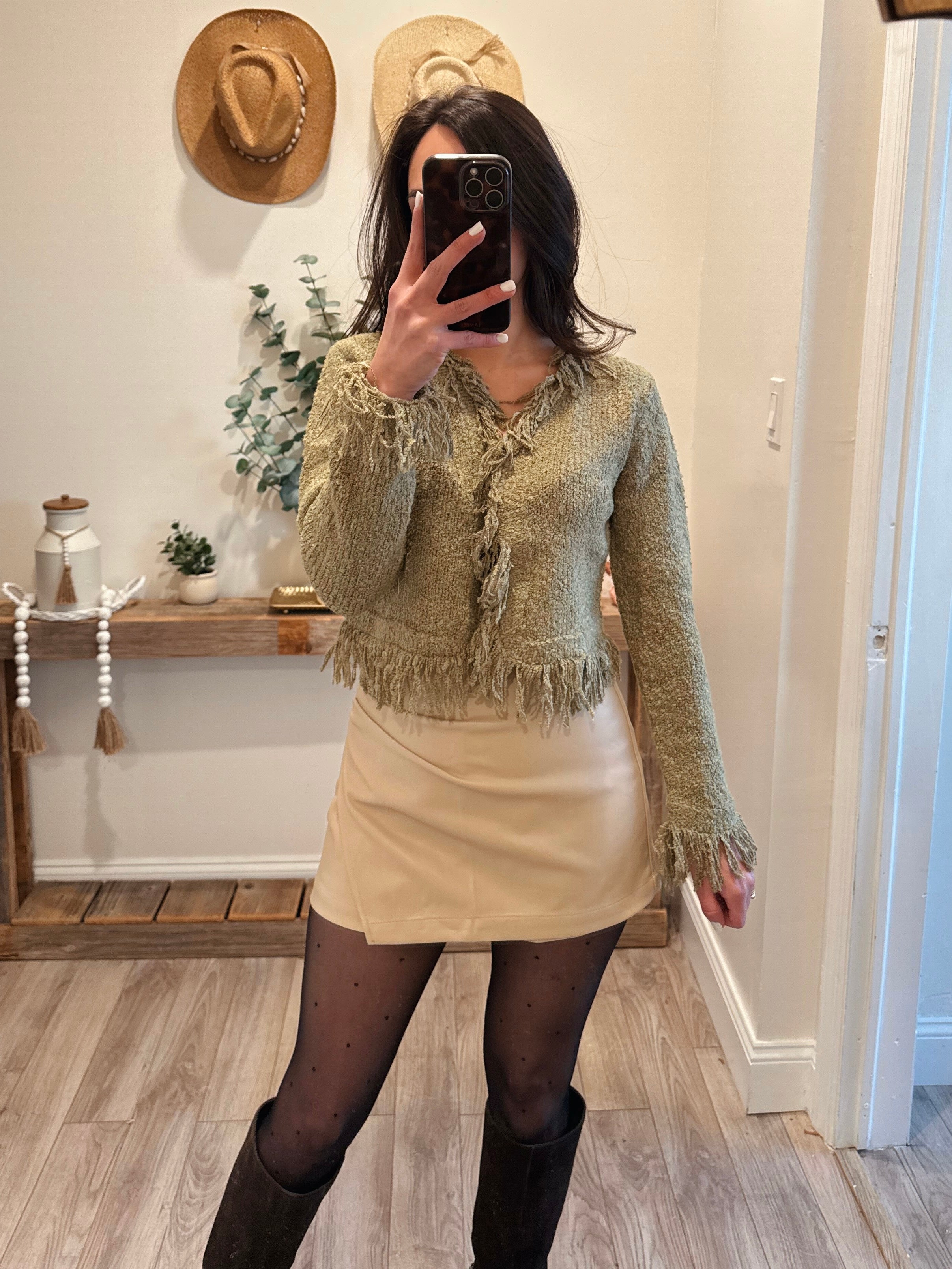 Olive Fringe Sweater Cardigan