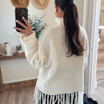 Powder Fringe Hem Ribbed Turtleneck Sweater