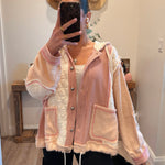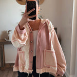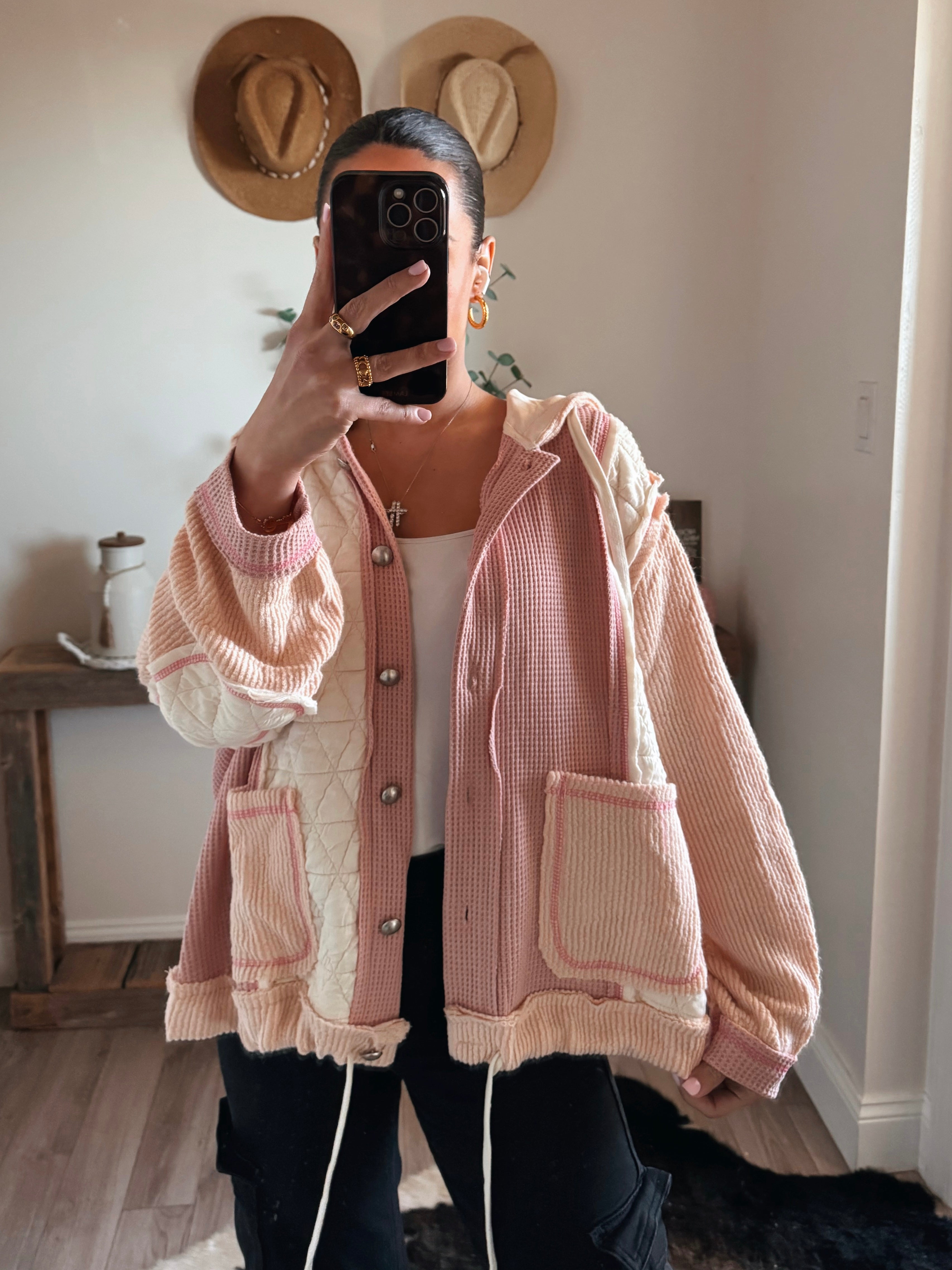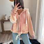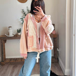Rose/Pink Multi Fabric Hooded Bu Shacket