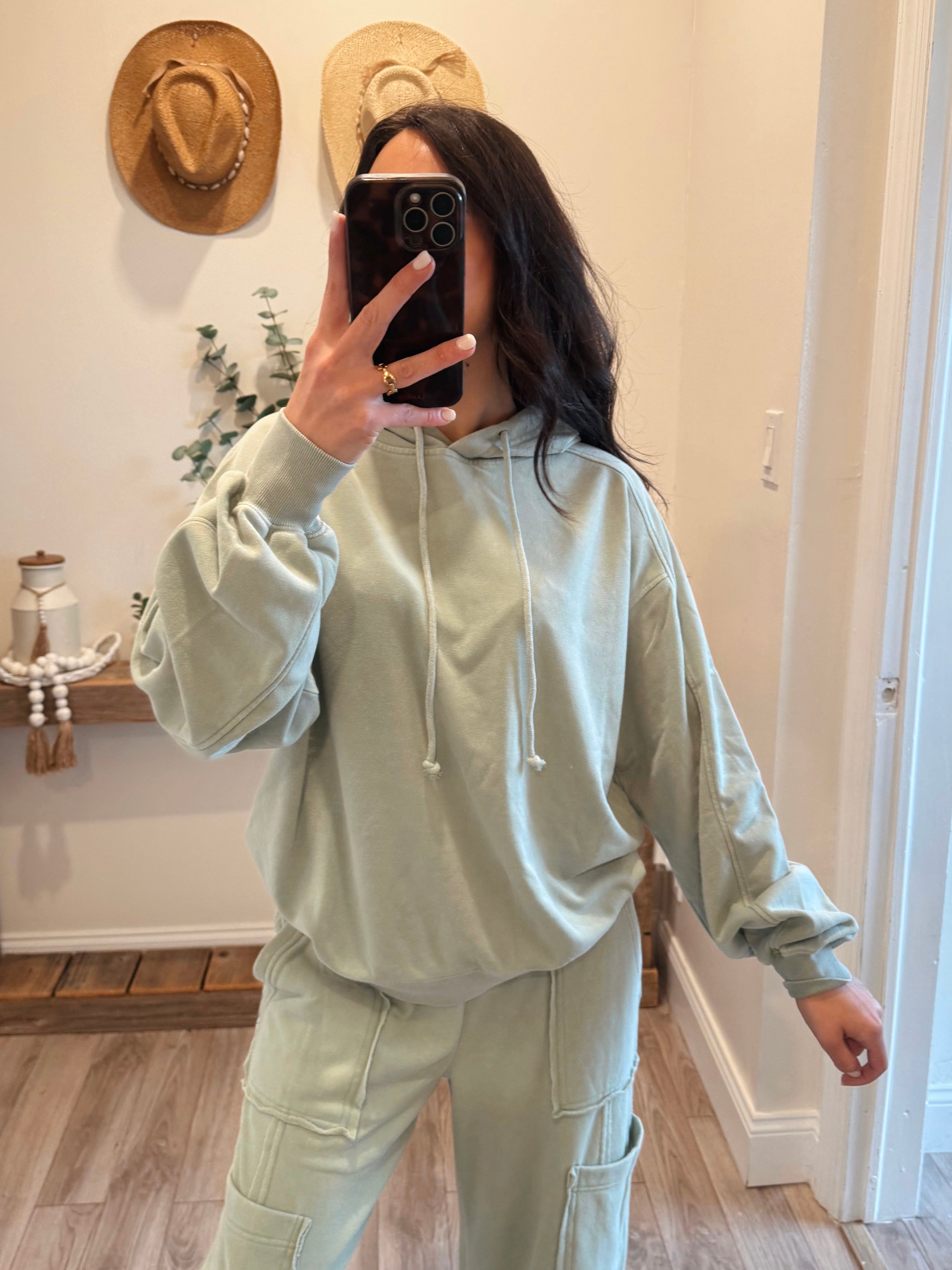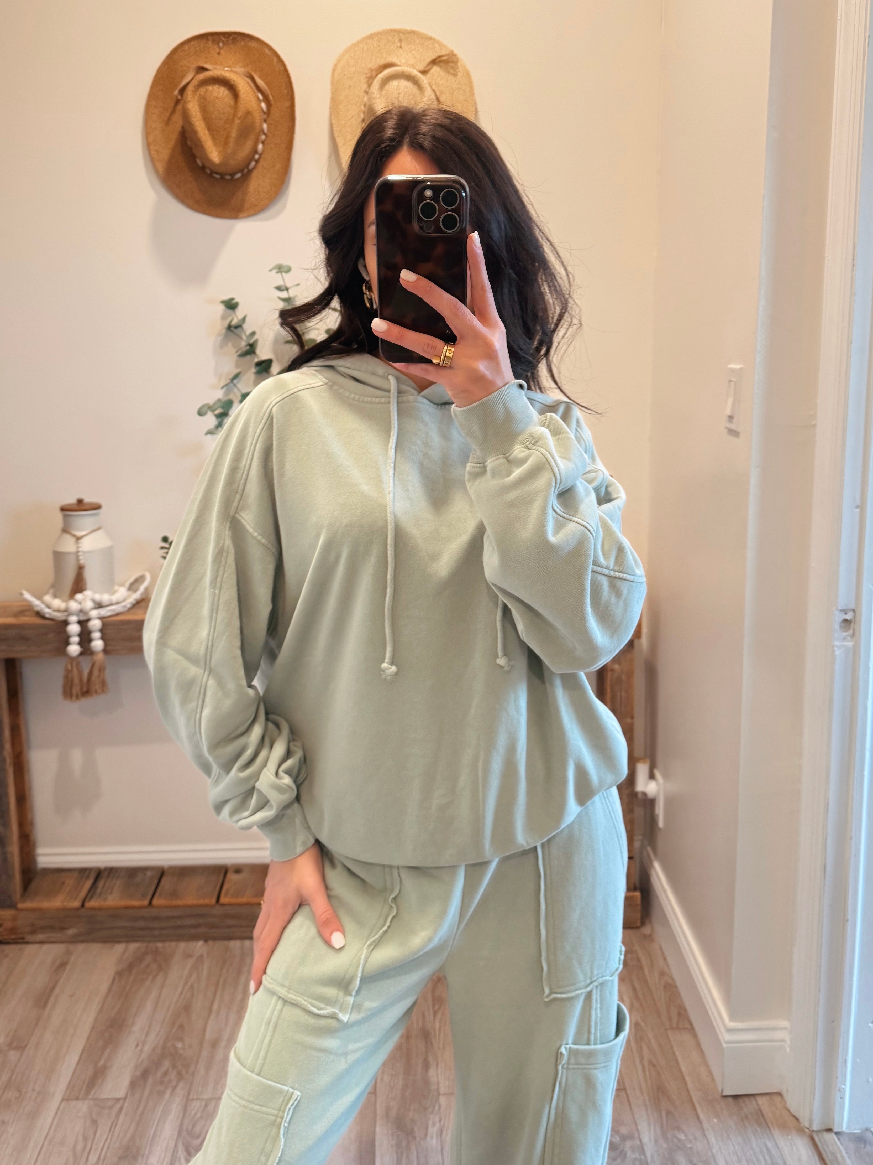 Product Features: This mineral-washed hoodie offers cozy comfort with unique seam details and a drawstring hood. Fitted cuffs add a playful volume to the sleeves. Ideal for casual layering with leggings or denim.
