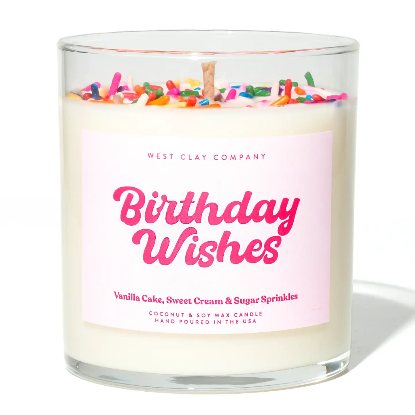 West Clay Birthday Wishes Sprinkle Candle | Vanilla Bday Cake Scented